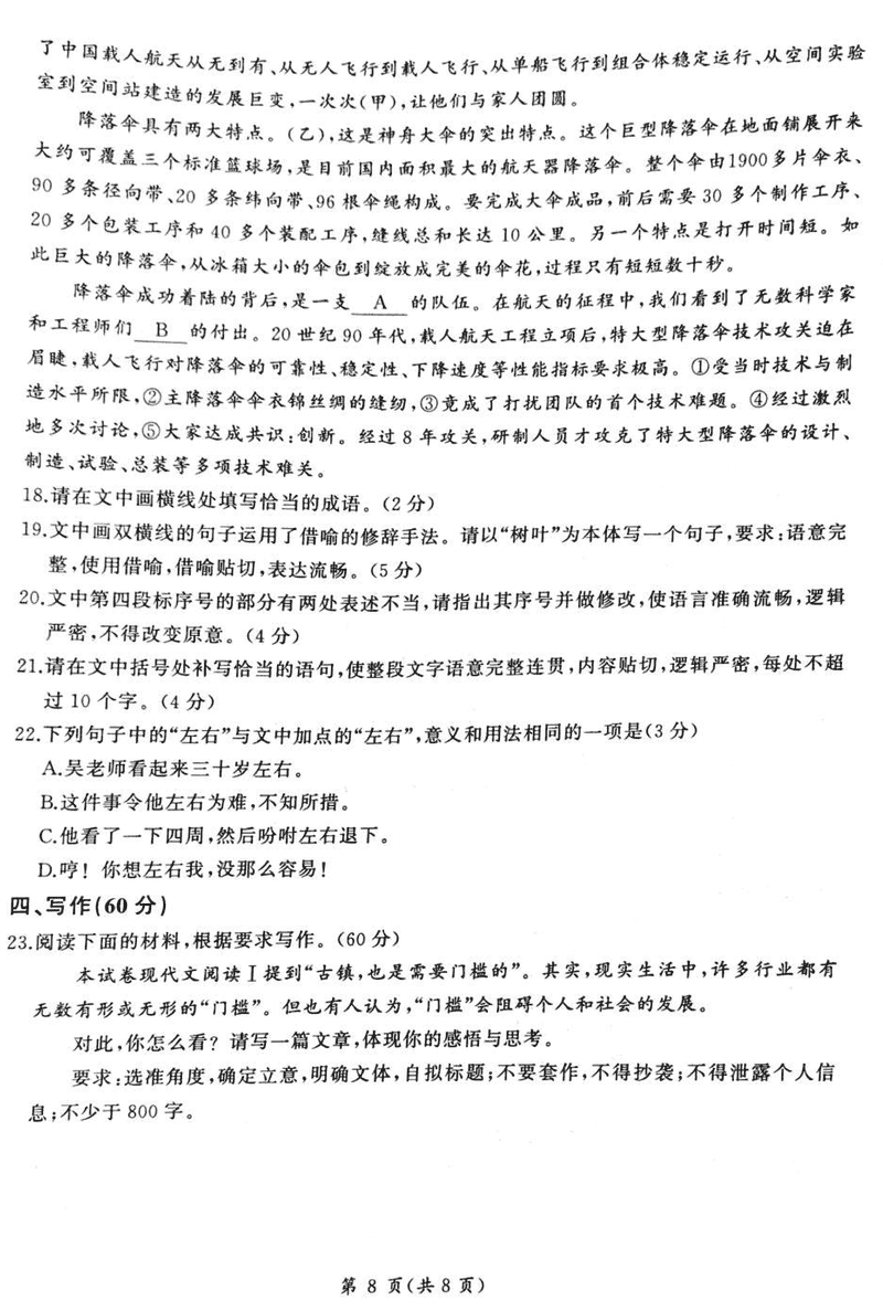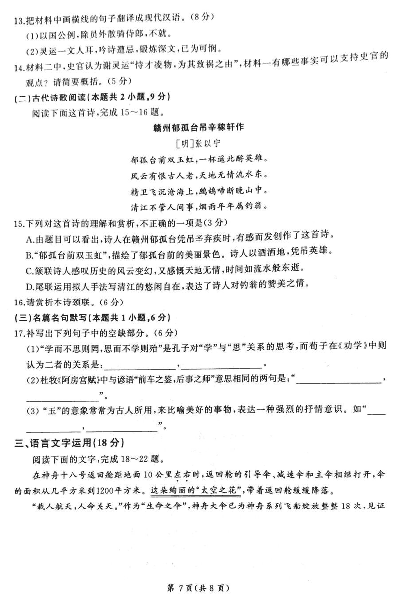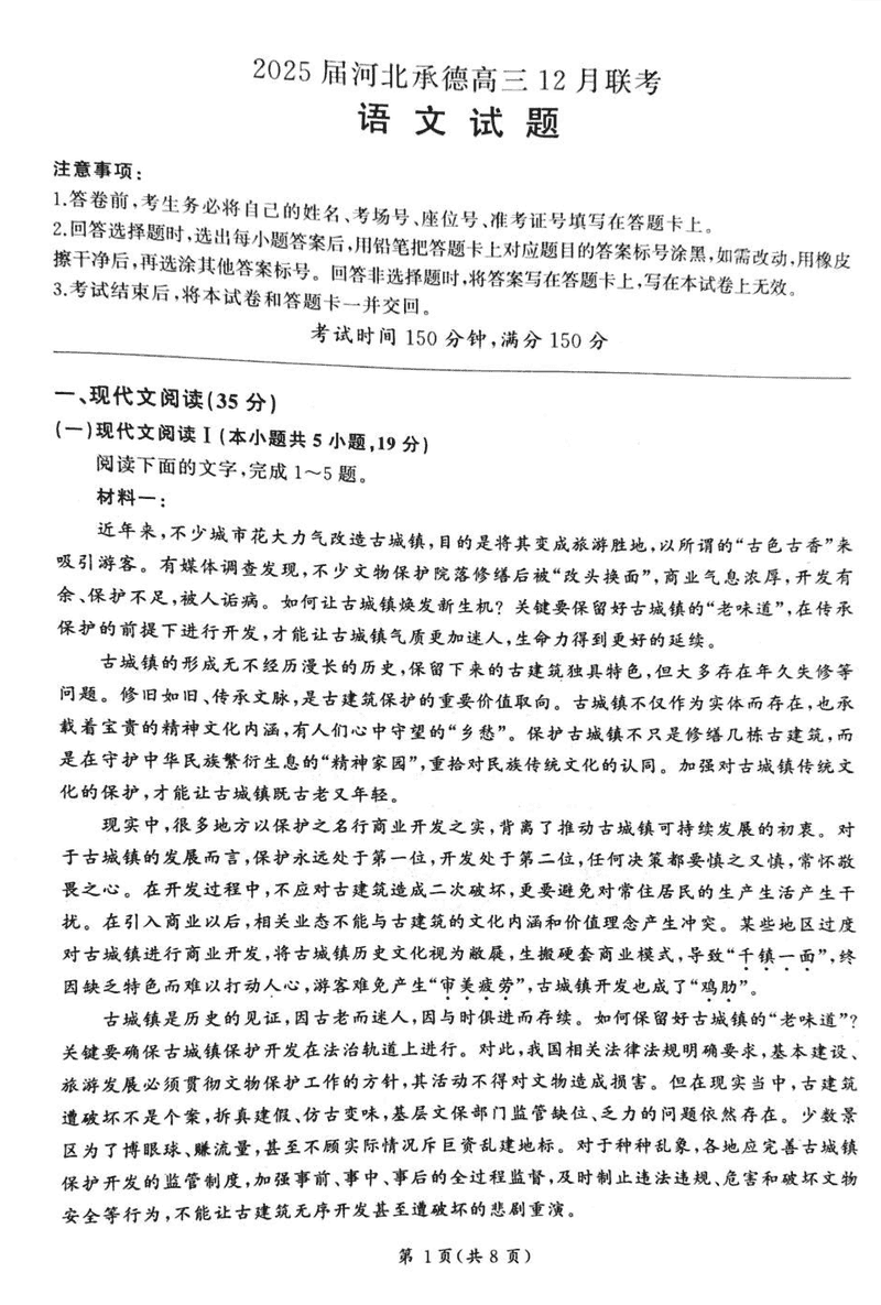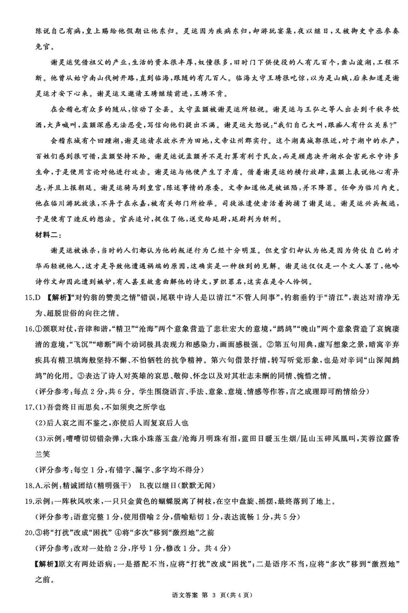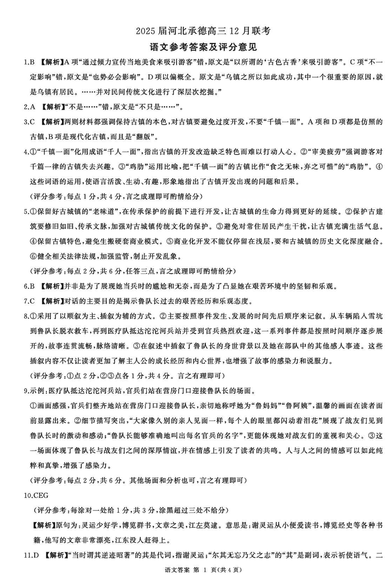 河北承德2025届高三上学期12月联考语文试题及答案 时间:2024-12-30 河北 语文试题 浙江北斗星盟2024年高三上学期12月月考语文考试已于近日开考,为方便考生考后及时查看考试情况,查漏补缺、弥补不足,本文整理了试题答案解析相关信息! 汇总:河北承德2025届高三上学期12月联考试题及答案汇总 语文试题及答案解析