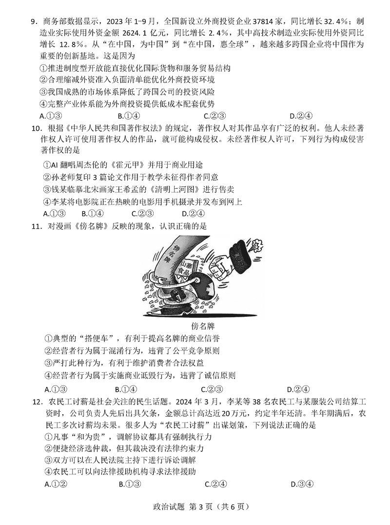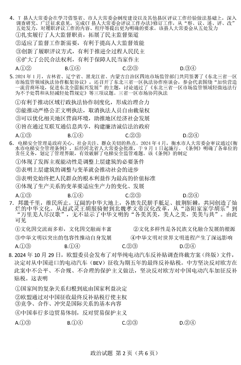 河北承德2025届高三上学期12月联考政治试题及答案 时间:2024-12-30 河北 文综试题 浙江北斗星盟2024年高三上学期12月月考政治考试已于近日开考,为方便考生考后及时查看考试情况,查漏补缺、弥补不足,本文整理了试题答案解析相关信息! 汇总:河北承德2025届高三上学期12月联考试题及答案汇总 政治试题及答案解析