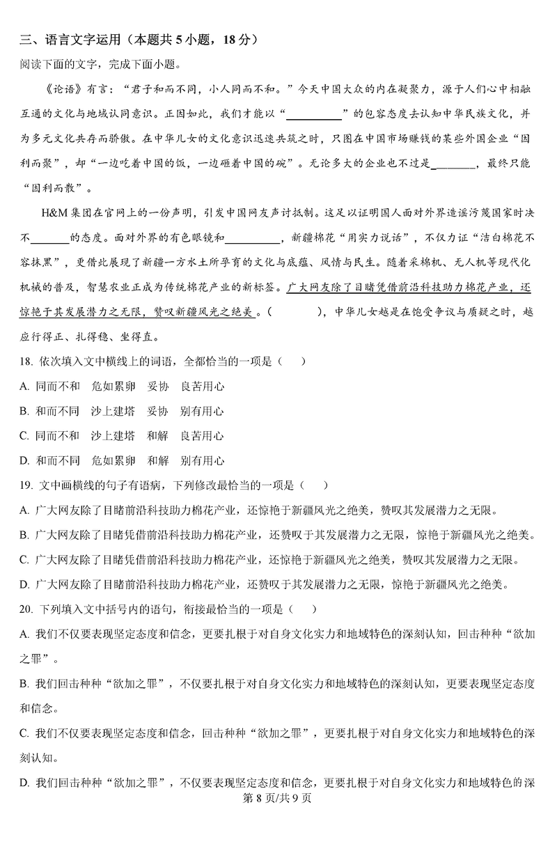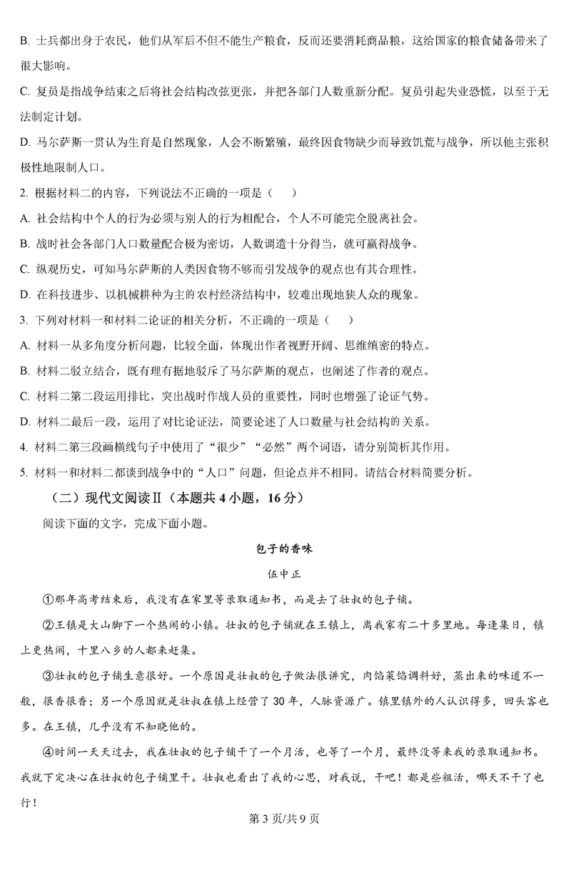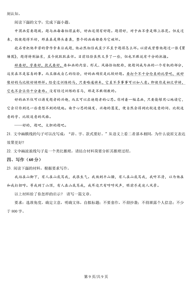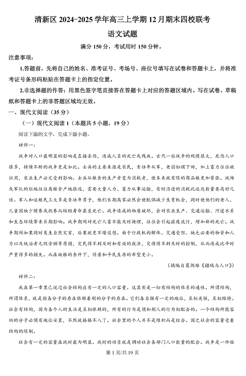 清远市清新区四校联考22025届高三上12月期末语文试题及答案