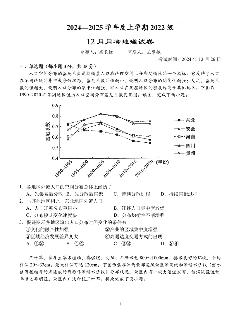湖北沙市中学2024-2025学年高三上12月月考地理试题及答案