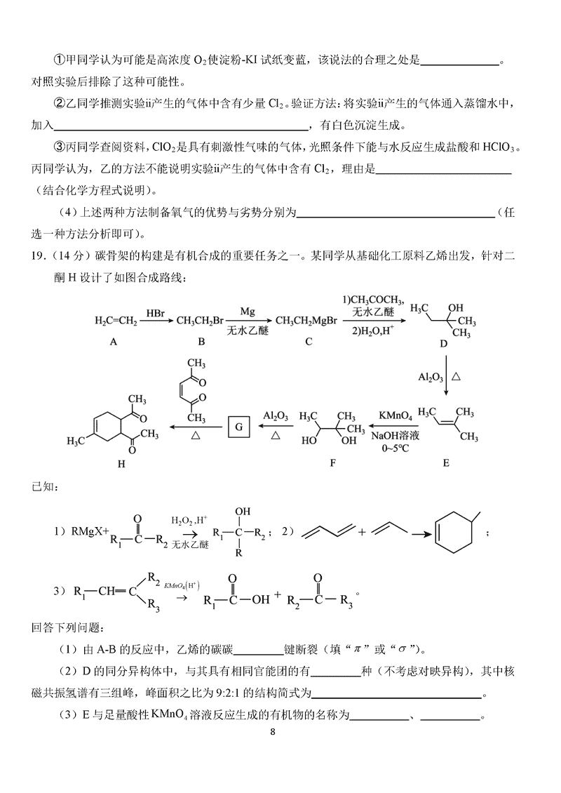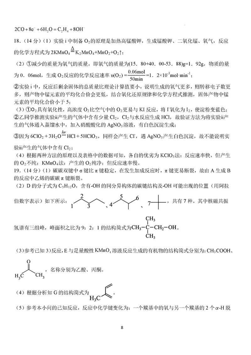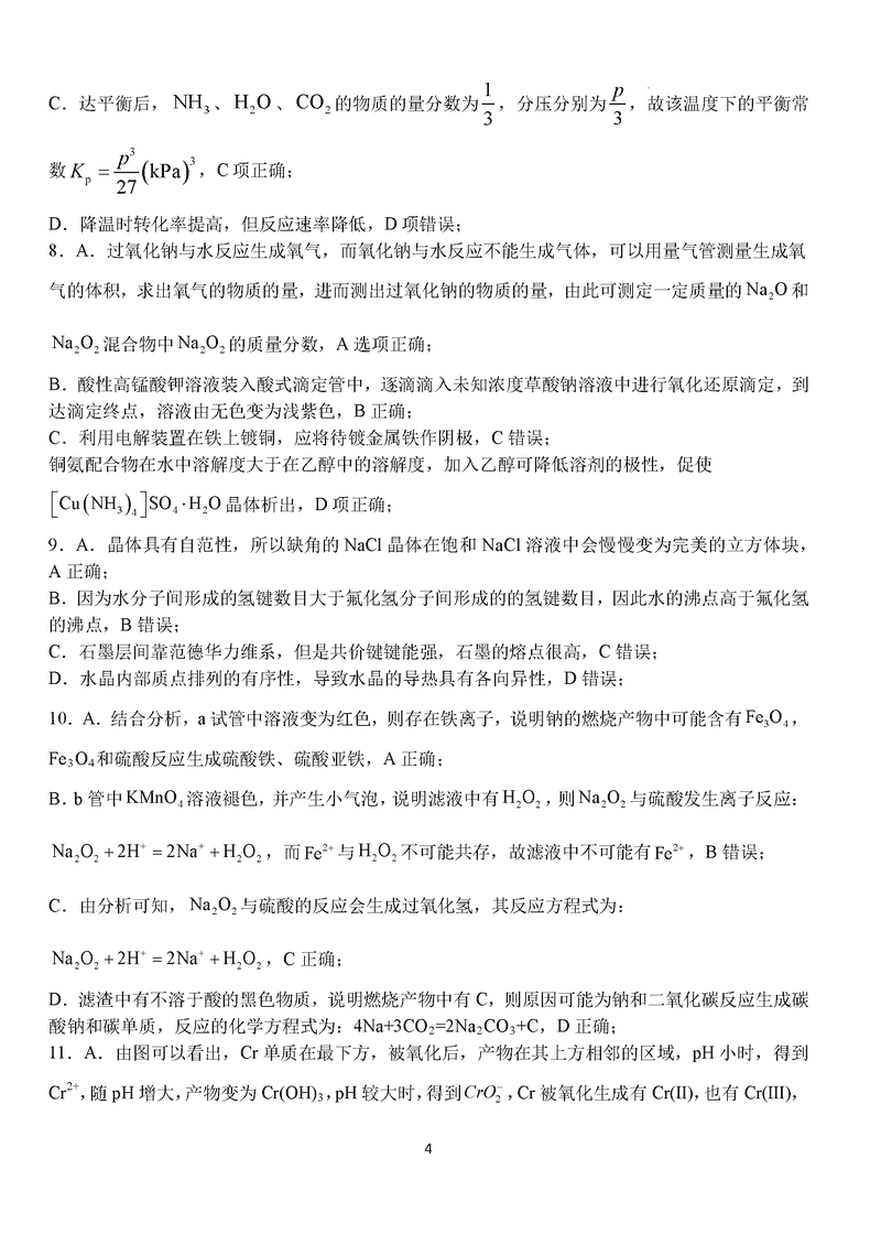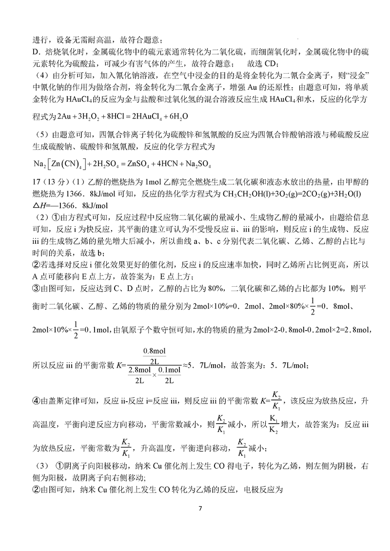 化学试题及答案解析