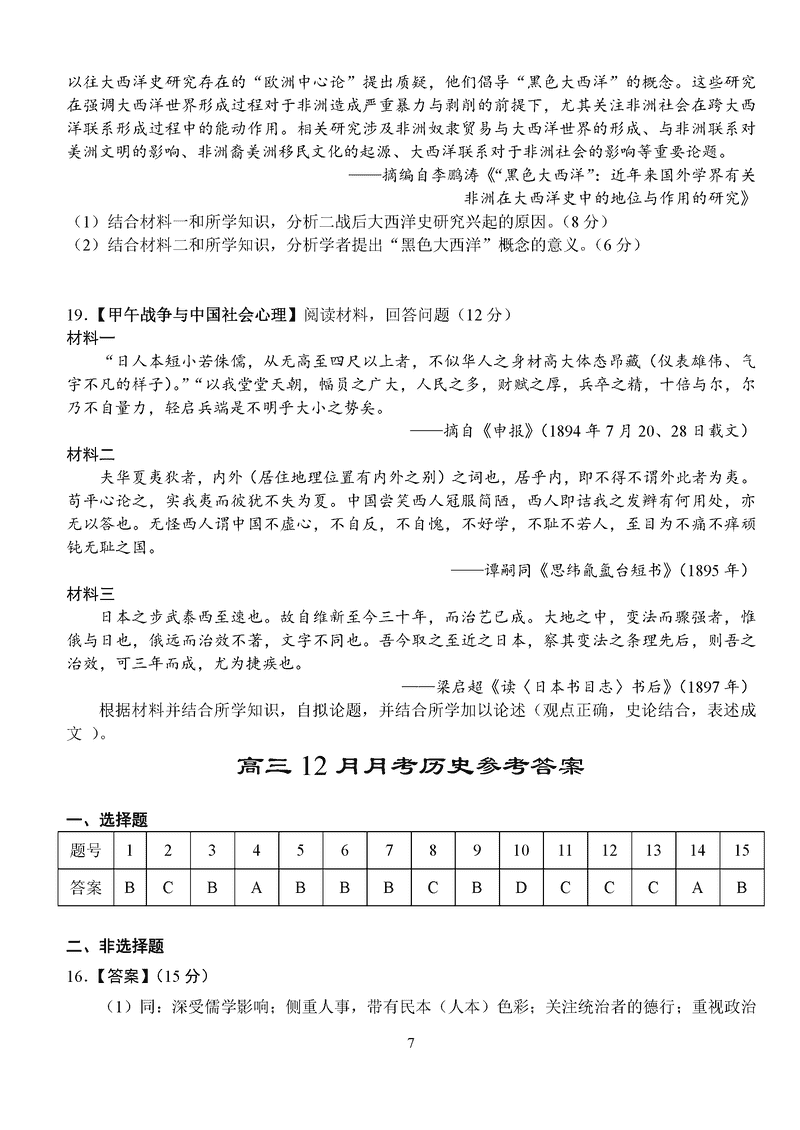 湖北沙市中学2024-2025学年高三上12月月考历史考试已于近日开考,为方便考生考后及时查看考试情况,查漏补缺、弥补不足,本文整理了试题答案解析相关信息!