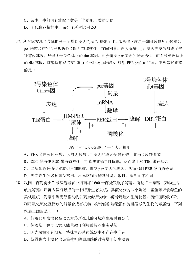 湖北沙市中学2024-2025学年高三上12月月考生物试题及答案