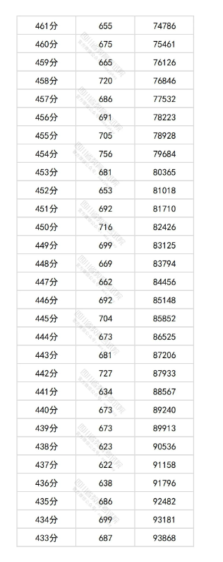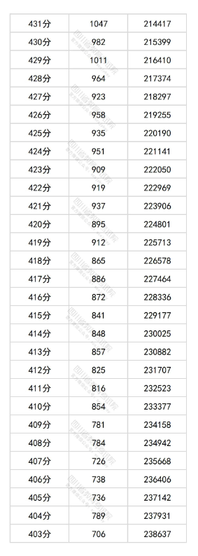 四川高考一分一段表 附位次排名对应大学(2025年参考)
