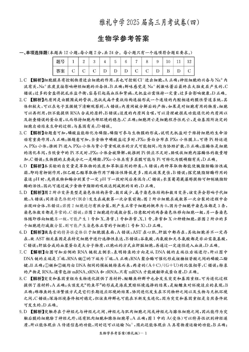 长沙雅礼中学2024-2025学年高三上学期月考(四)生物考试已于近日开考,为方便考生考后及时查看考试情况,查漏补缺、弥补不足,本文整理了试题答案解析相关信息!