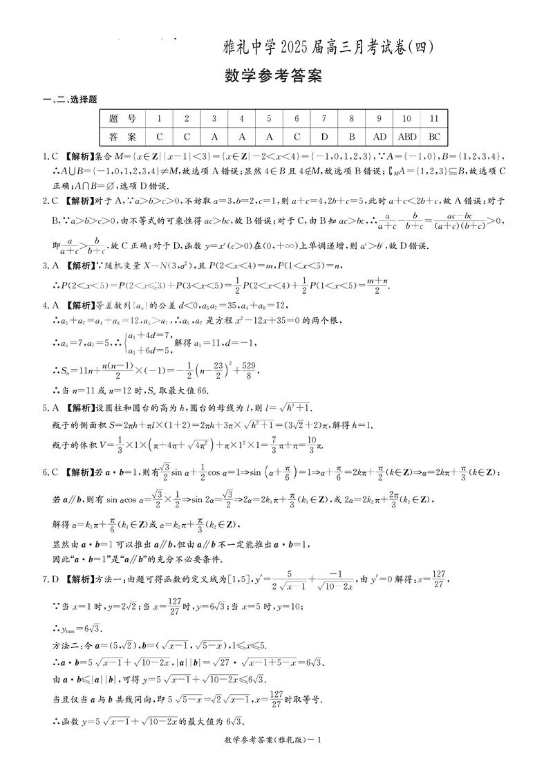 长沙雅礼中学2024-2025学年高三上学期月考(四)数学考试已于近日开考,为方便考生考后及时查看考试情况,查漏补缺、弥补不足,本文整理了试题答案解析相关信息!