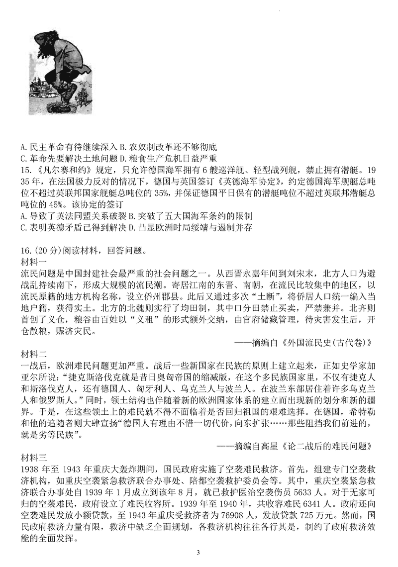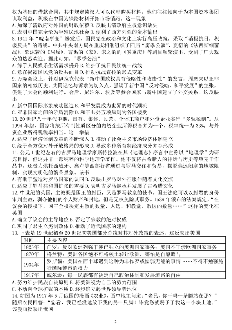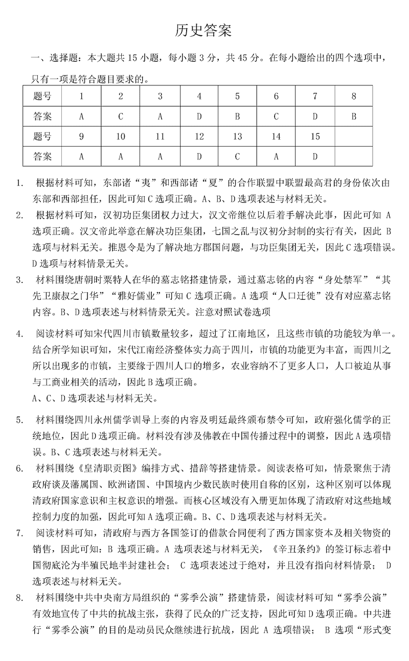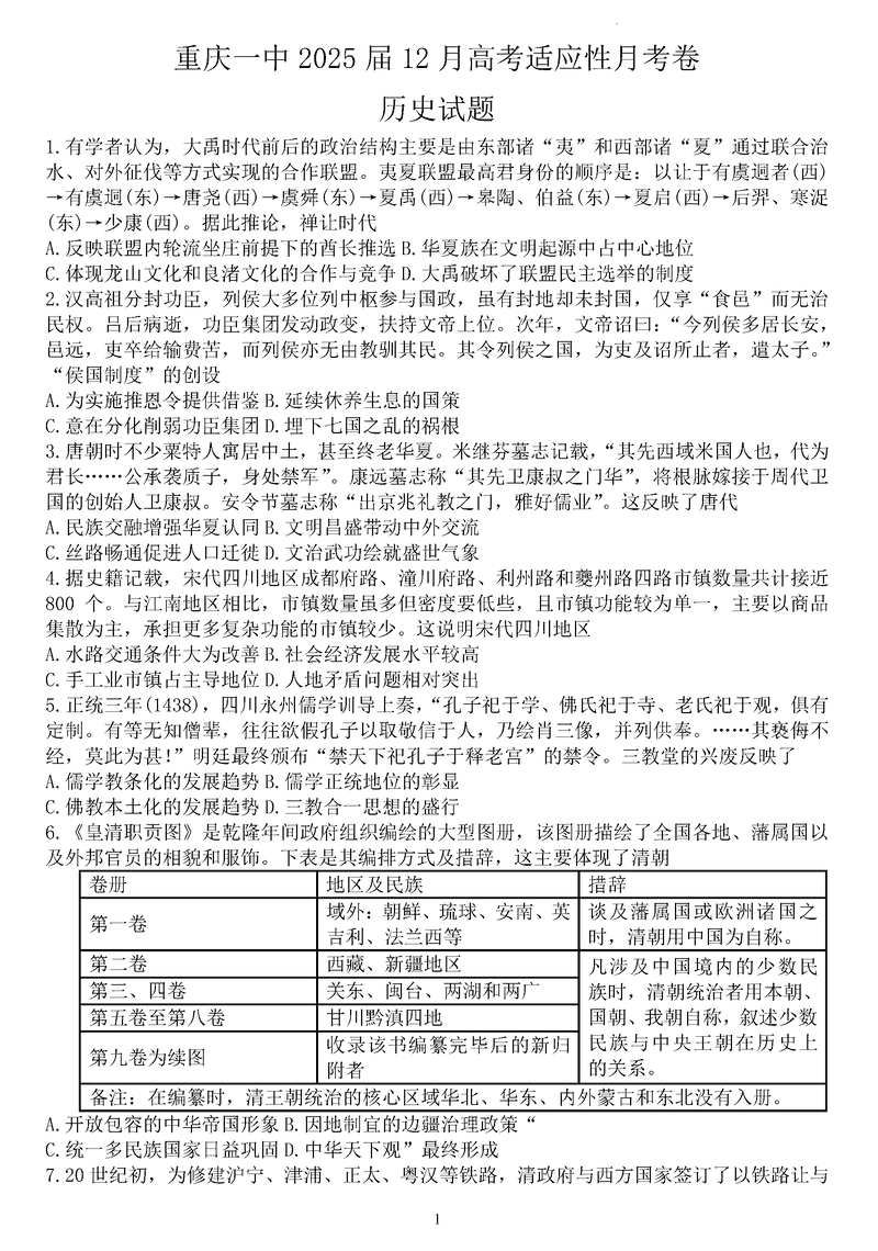 重庆一中2025届高三上学期12月月考历史试题及答案 时间:2025-01-03 重庆 文综试题 重庆一中2025届高三上学期12月月考历史考试已于近日开考,为方便考生考后及时查看考试情况,查漏补缺、弥补不足,本文整理了试题答案解析相关信息! 汇总:重庆一中2025届高三上学期12月月考试题及答案汇总 历史试题及答案解析