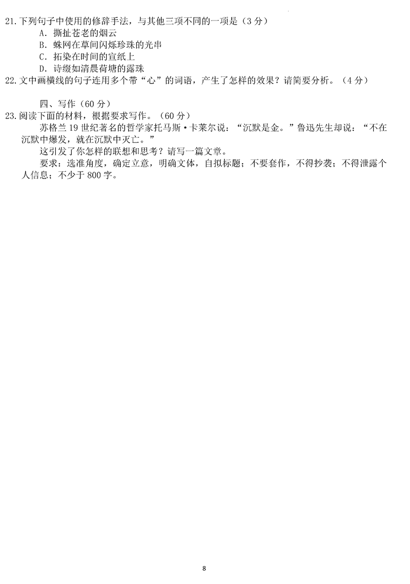 重庆一中2025届高三上学期12月月考语文试题及答案 时间:2025-01-03 重庆 语文试题 重庆一中2025届高三上学期12月月考语文考试已于近日开考,为方便考生考后及时查看考试情况,查漏补缺、弥补不足,本文整理了试题答案解析相关信息! 汇总:重庆一中2025届高三上学期12月月考试题及答案汇总 语文试题及答案解析
