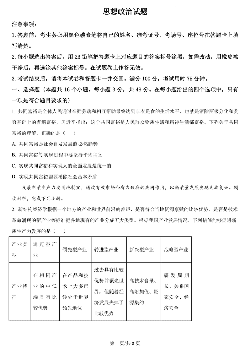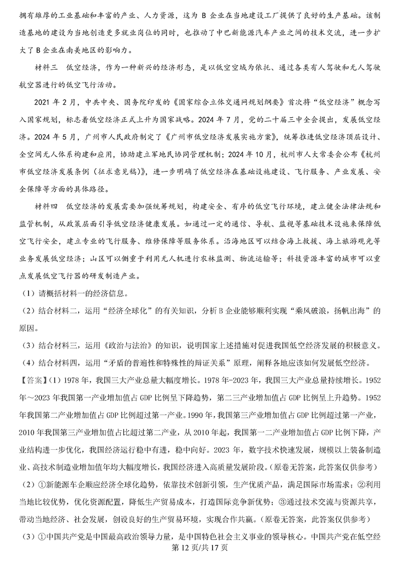 重庆一中2025届高三上学期12月月考政治试题及答案 时间:2025-01-03 重庆 文综试题 重庆一中2025届高三上学期12月月考政治考试已于近日开考,为方便考生考后及时查看考试情况,查漏补缺、弥补不足,本文整理了试题答案解析相关信息! 汇总:重庆一中2025届高三上学期12月月考试题及答案汇总 政治试题及答案解析