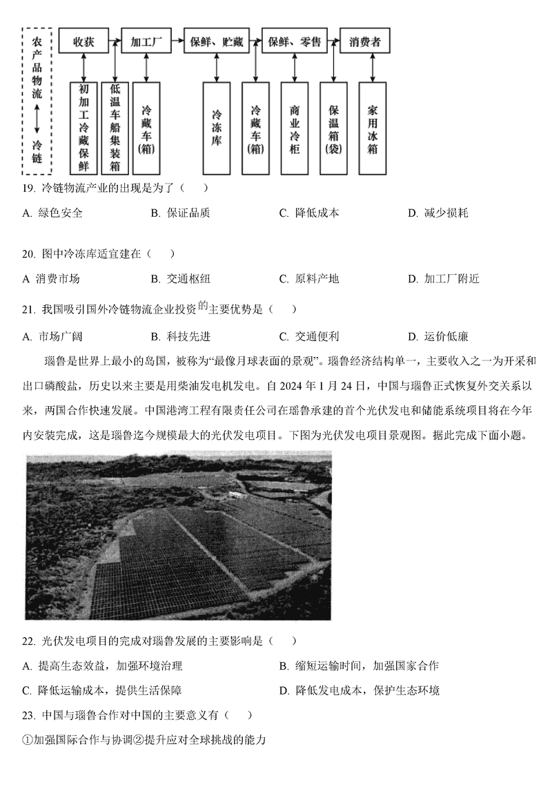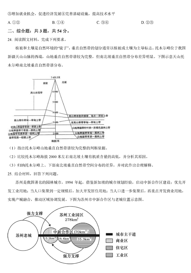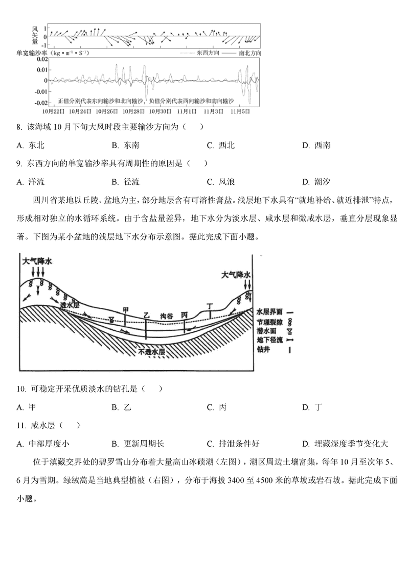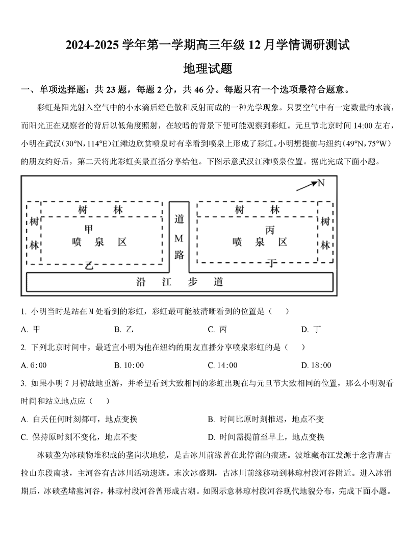 扬州市高邮市2024-2025学年高三上学期12月月考地理试题及答案