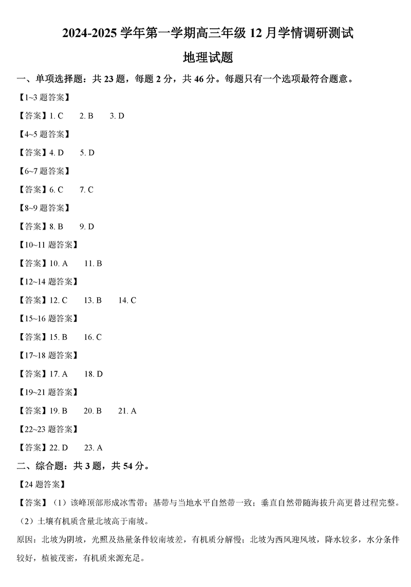 扬州市高邮市2024-2025学年高三上学期12月月考地理考试已于近日开考,为方便考生考后及时查看考试情况,查漏补缺、弥补不足,本文整理了试题答案解析相关信息!