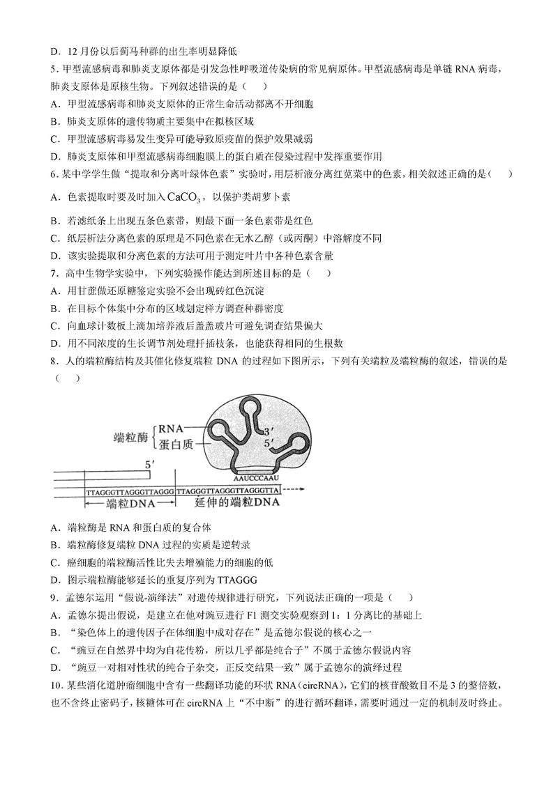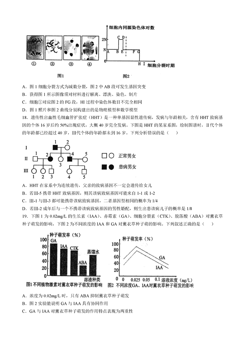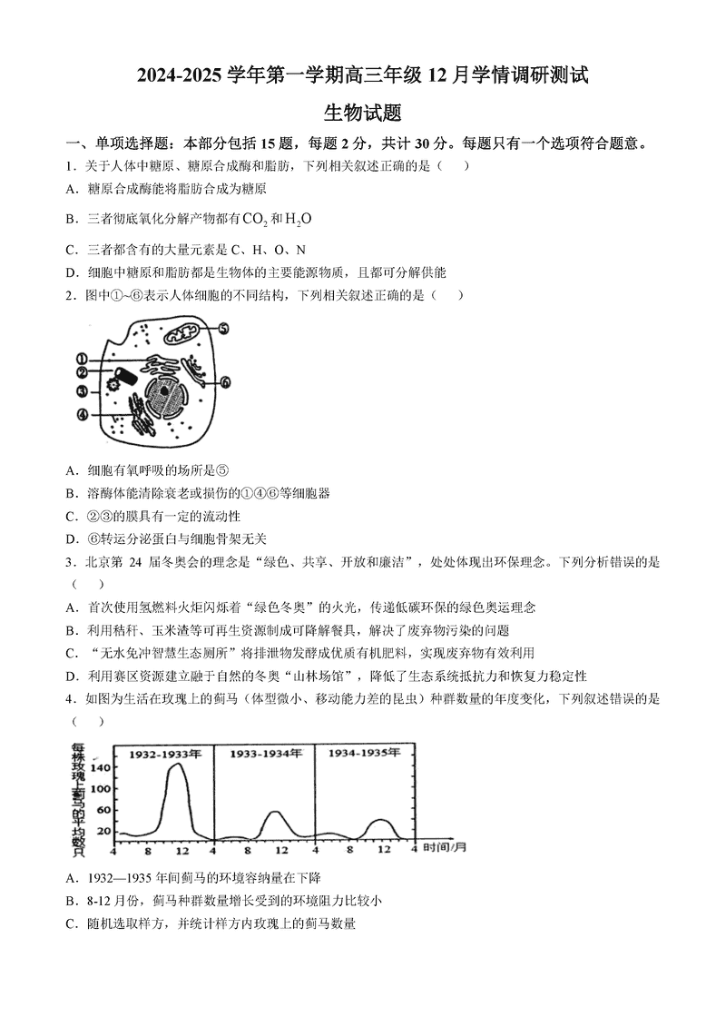 扬州市高邮市2024-2025学年高三上学期12月月考生物试题及答案