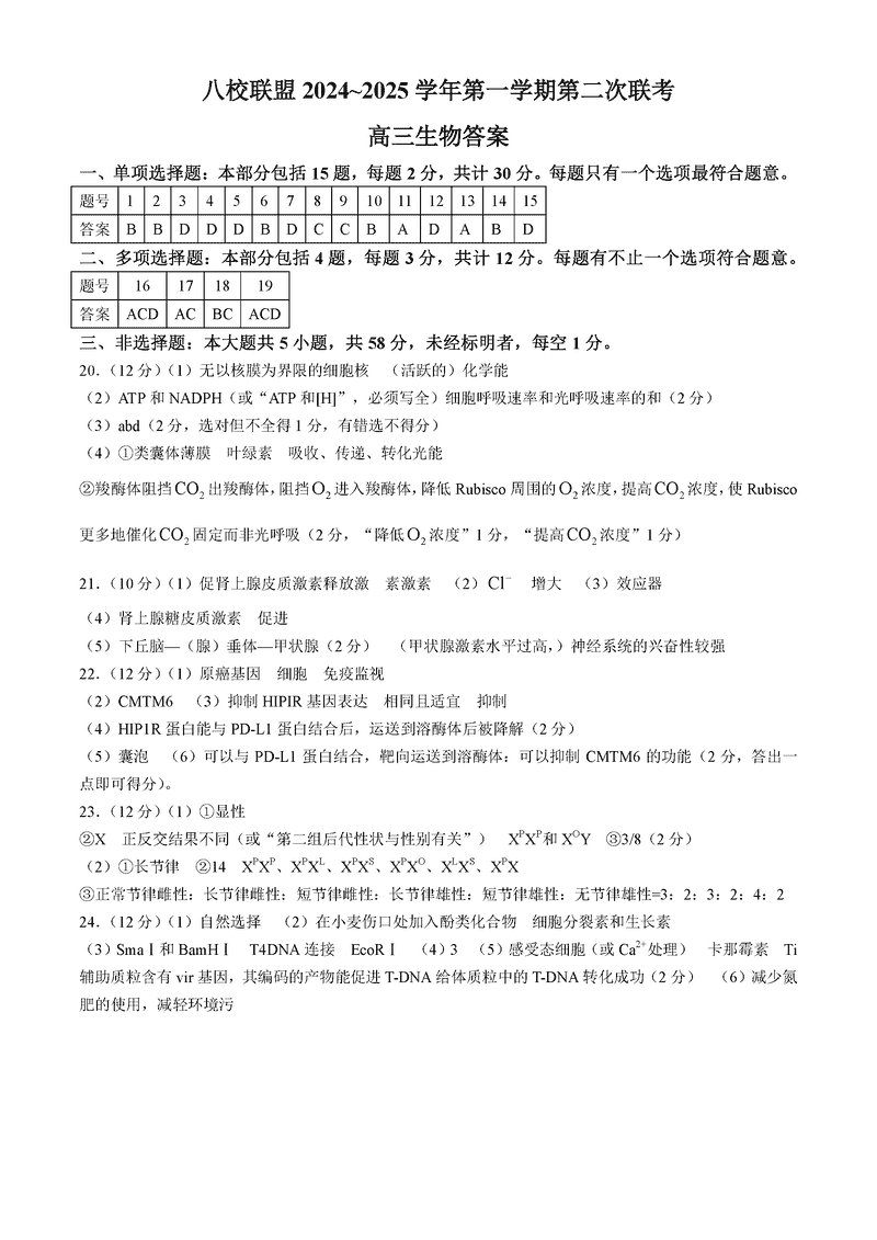 扬州市高邮市2024-2025学年高三上学期12月月考生物考试已于近日开考,为方便考生考后及时查看考试情况,查漏补缺、弥补不足,本文整理了试题答案解析相关信息!