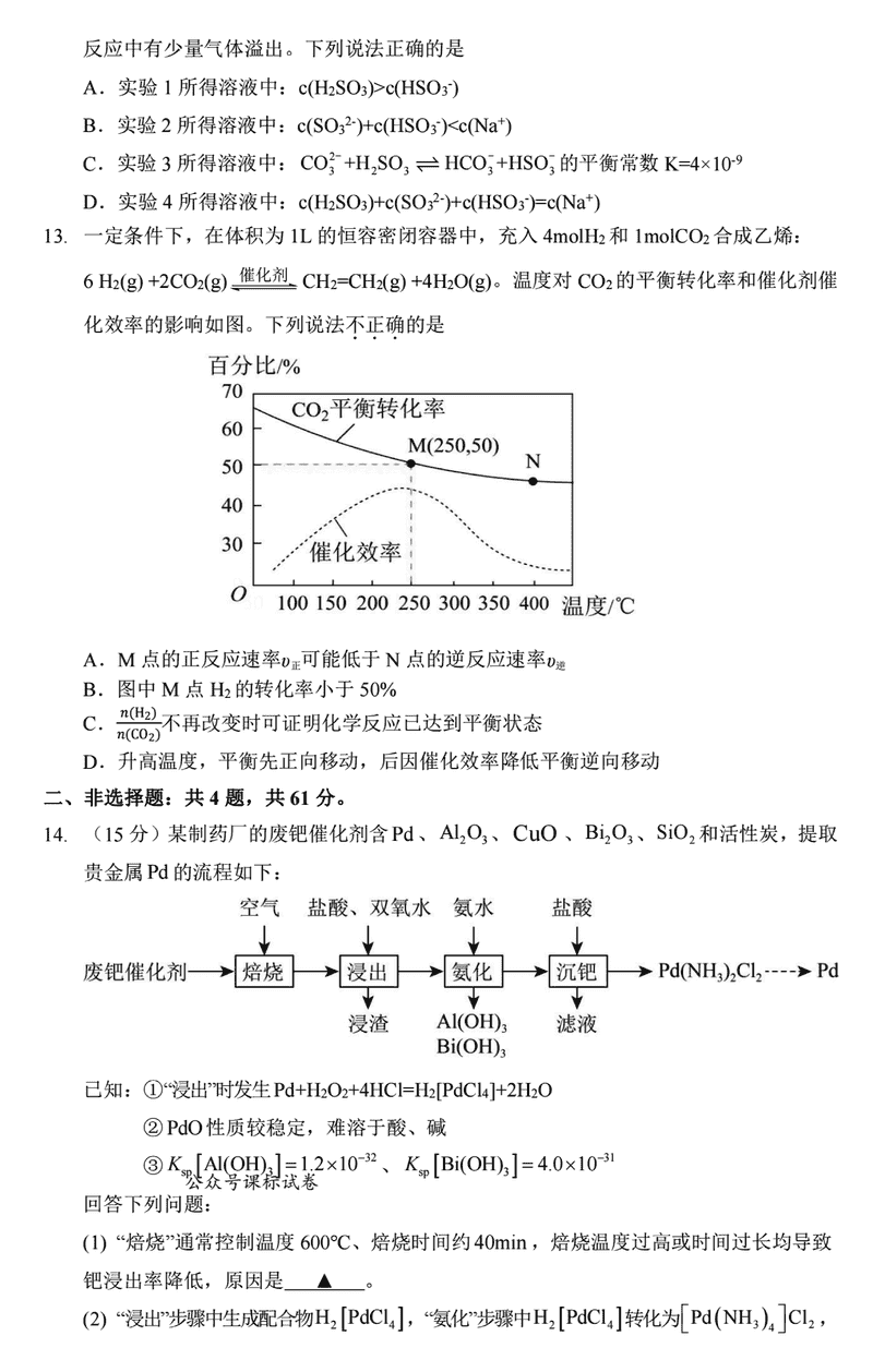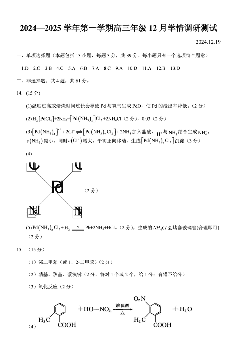 扬州市高邮市2024-2025学年高三上学期12月月考化学考试已于近日开考,为方便考生考后及时查看考试情况,查漏补缺、弥补不足,本文整理了试题答案解析相关信息!