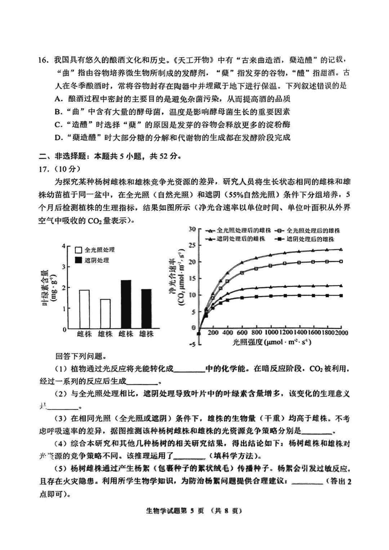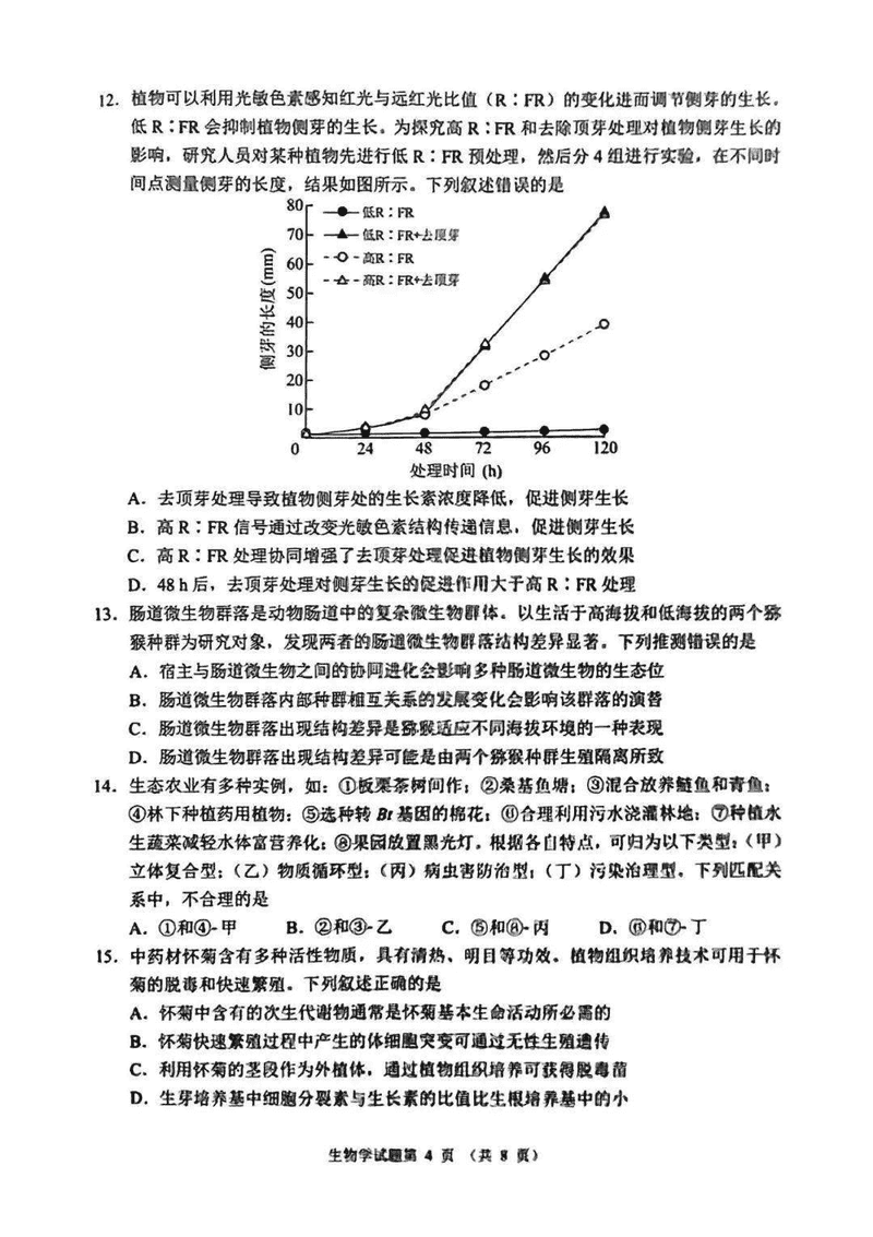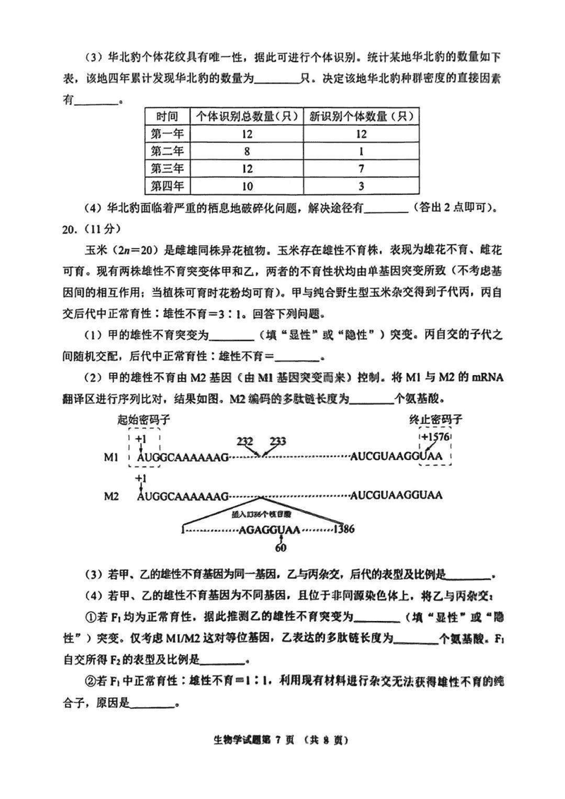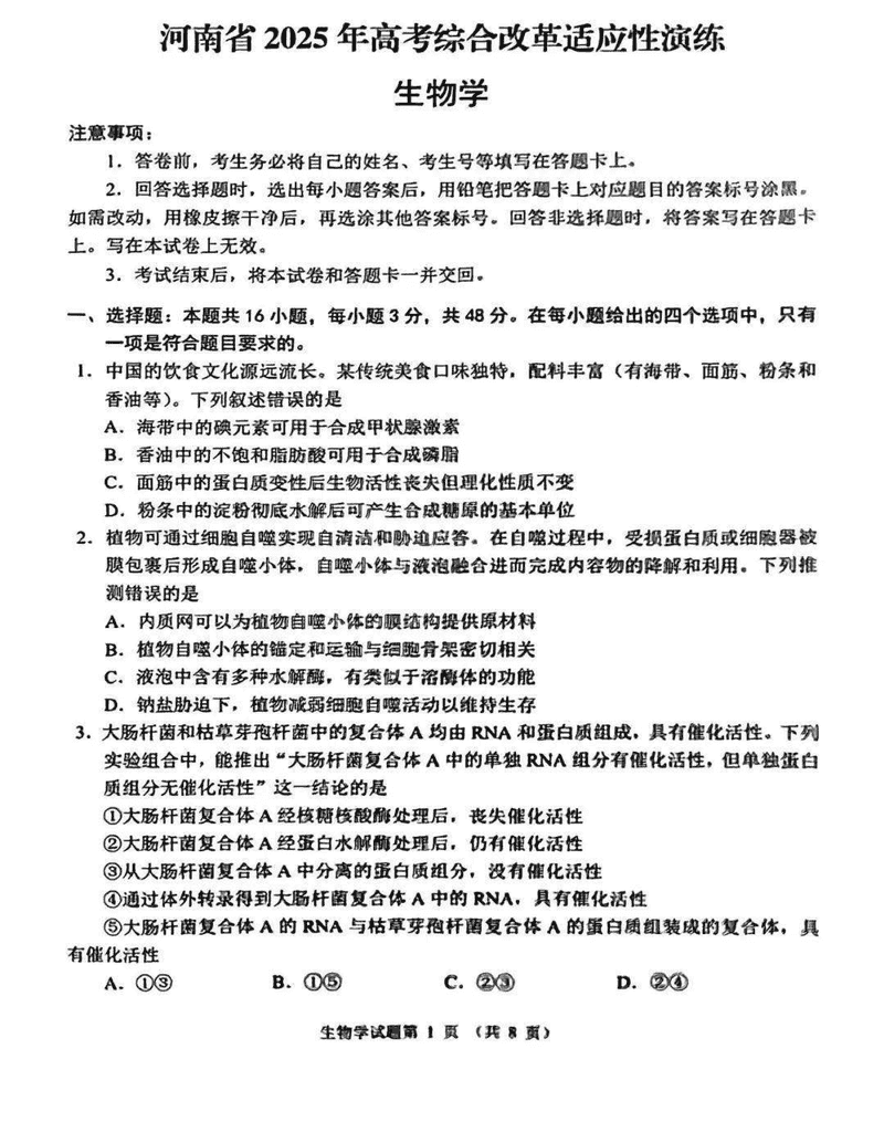 河南八省联考2025年高考综合改革适应性演练生物试题及答案
