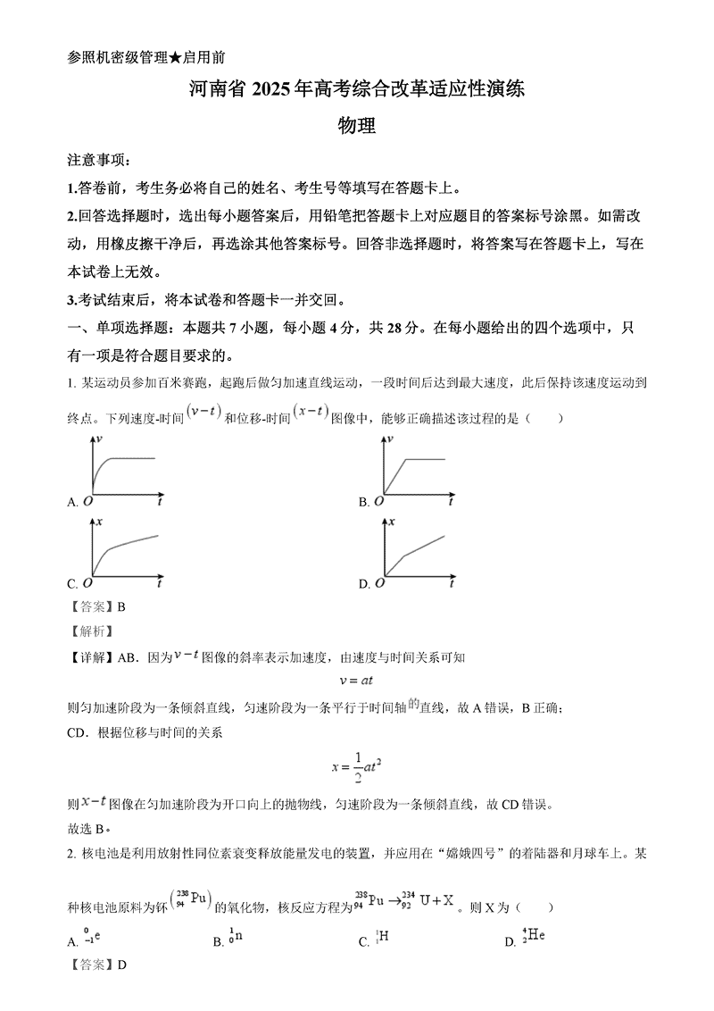 河南八省联考2025年高考综合改革适应性演练物理考试已于近日开考,为方便考生考后及时查看考试情况,查漏补缺、弥补不足,本文整理了试题答案解析相关信息!