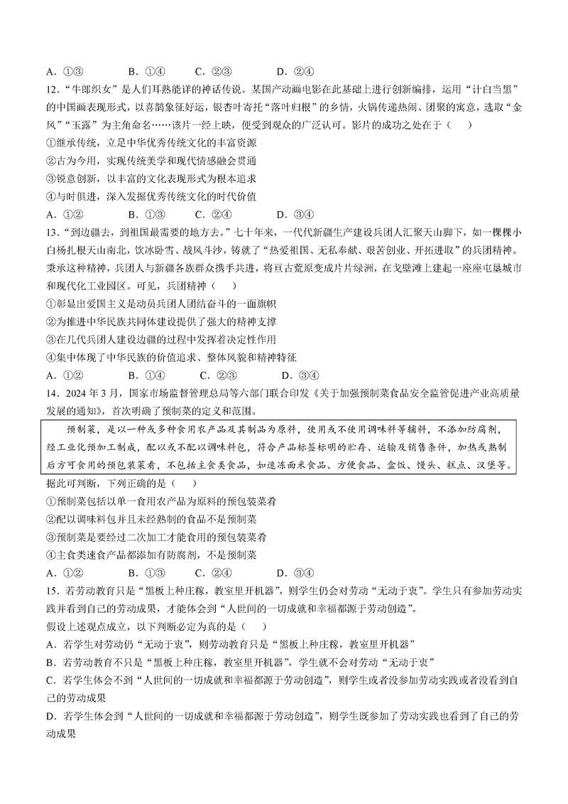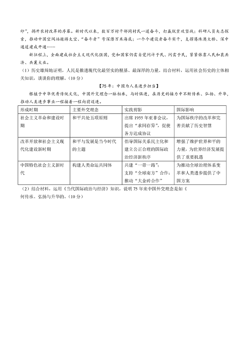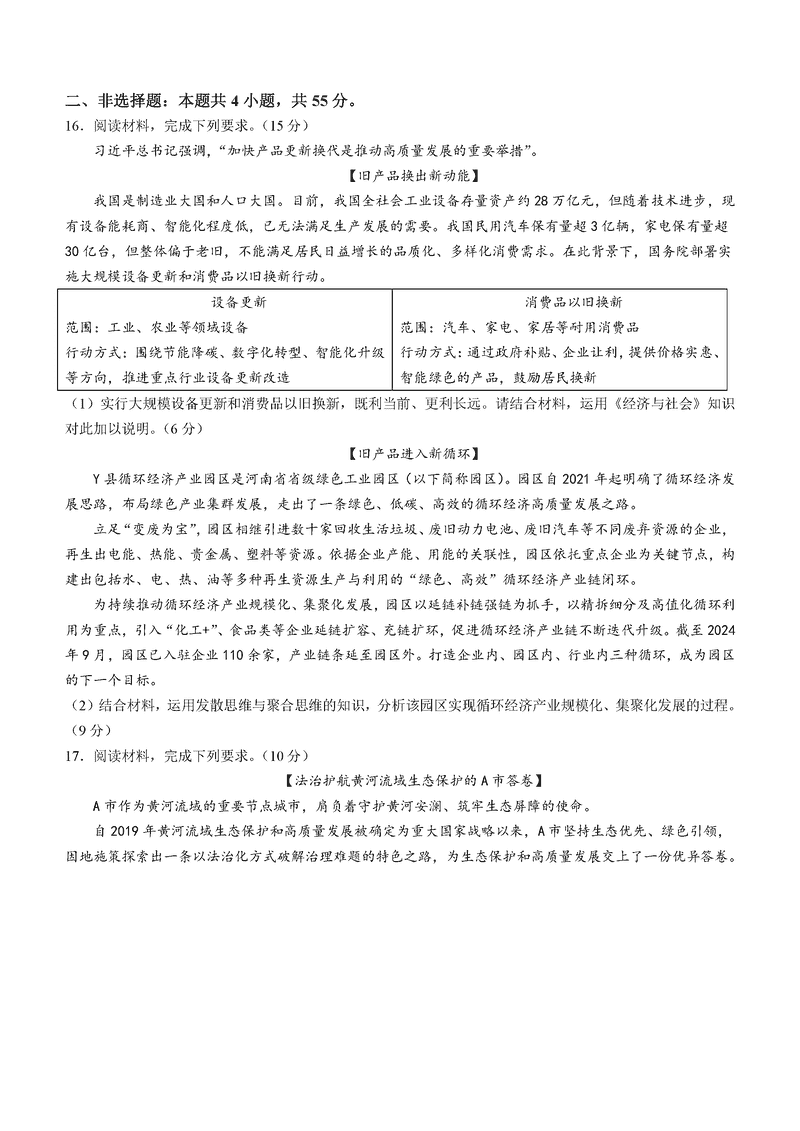 河南八省联考2025年高考综合改革适应性演练政治试题及答案