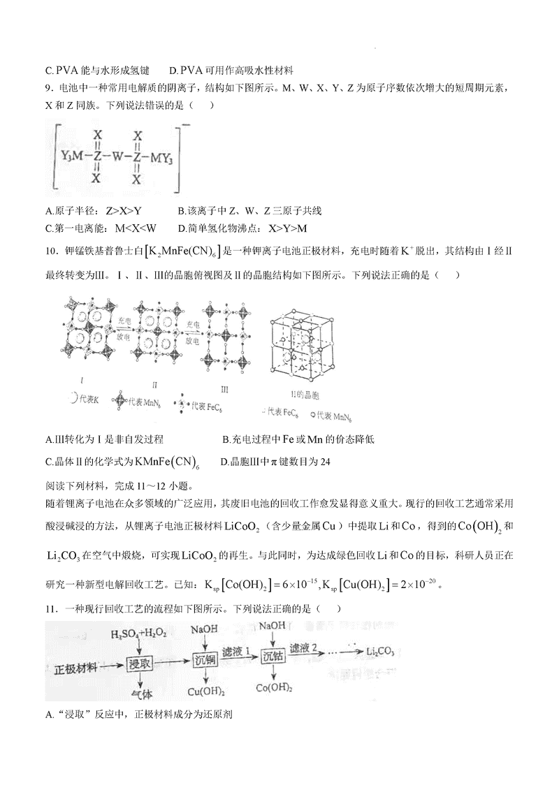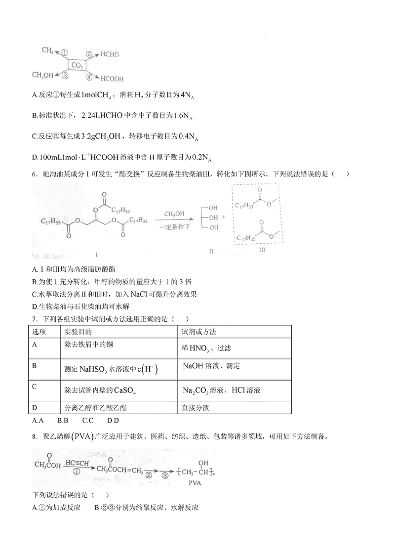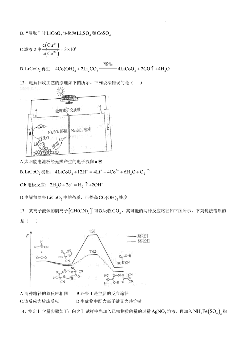 内蒙古八省联考2025年高考综合改革适应性演练化学试题及答案