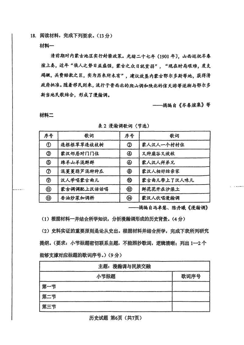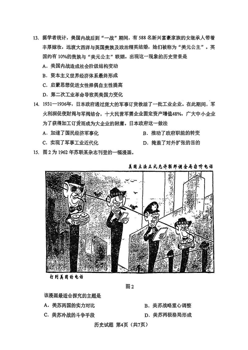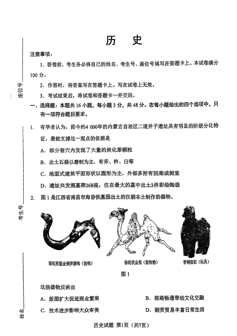 内蒙古八省联考2025年高考综合改革适应性演练历史试题及答案