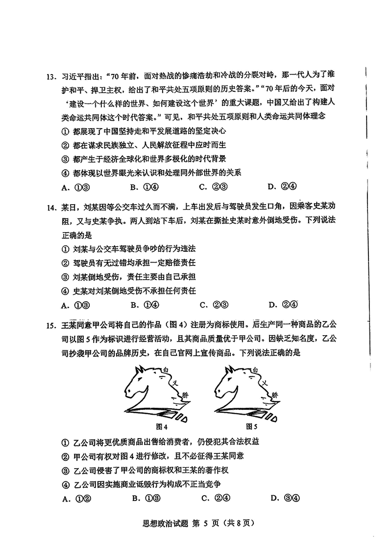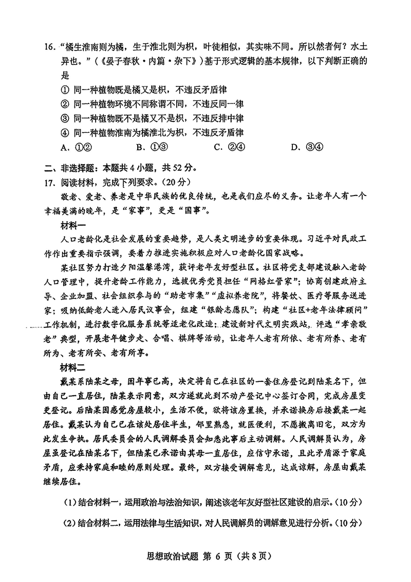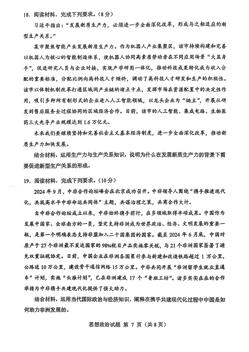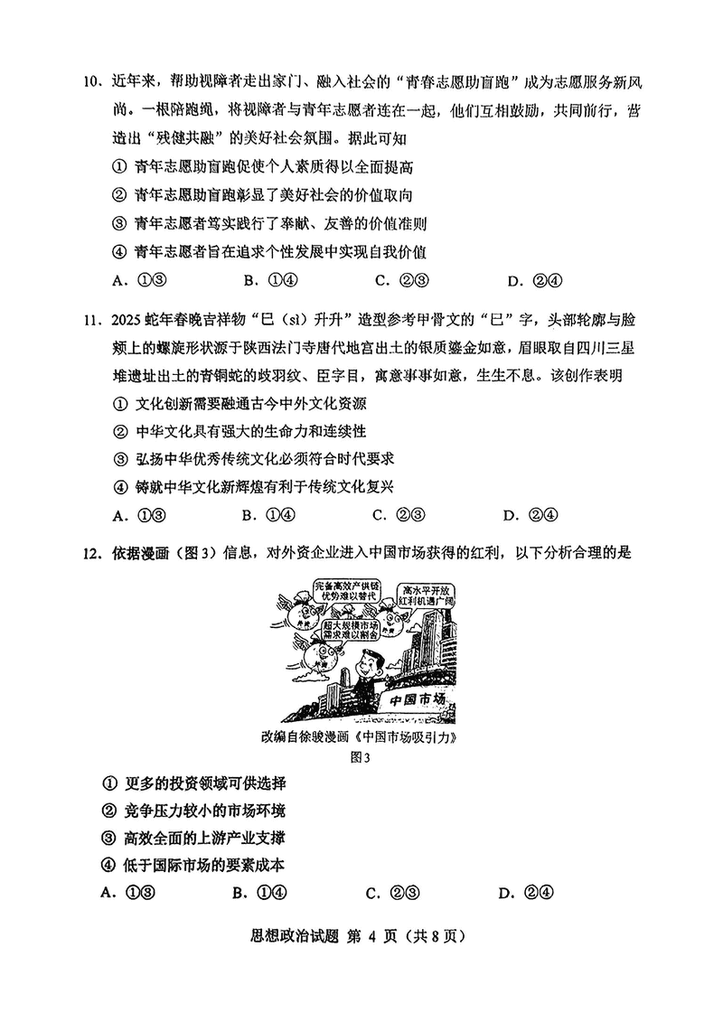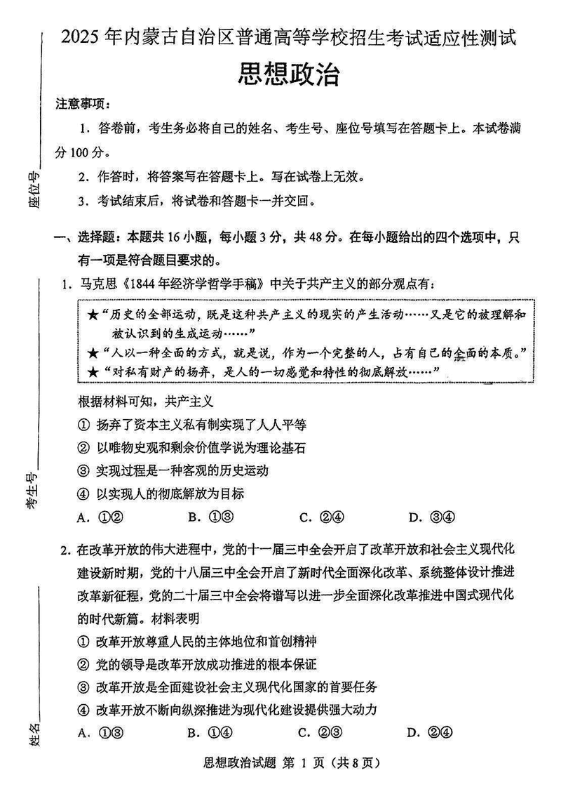 内蒙古八省联考2025年高考综合改革适应性演练政治试题及答案