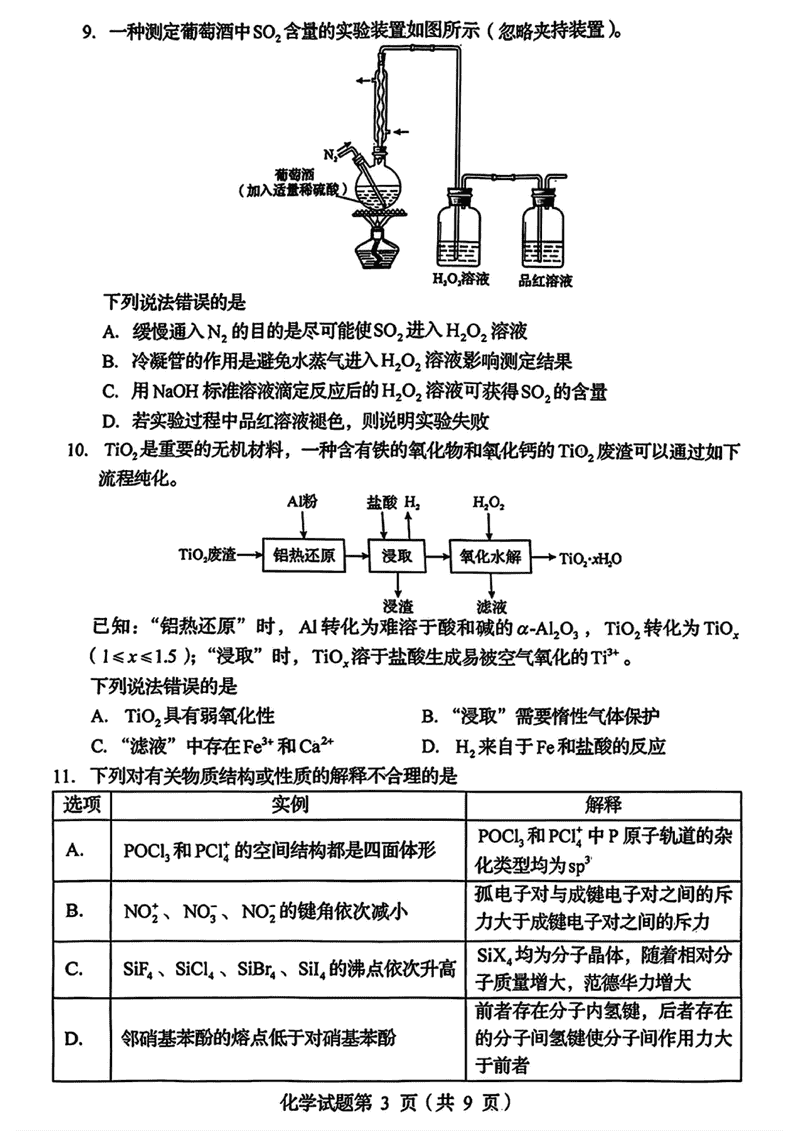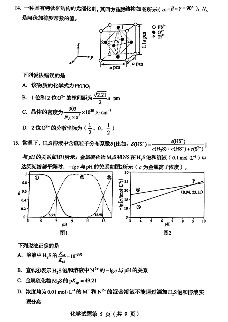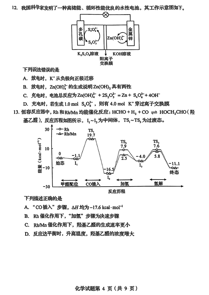 四川2025年1月八省联考化学试题及答案