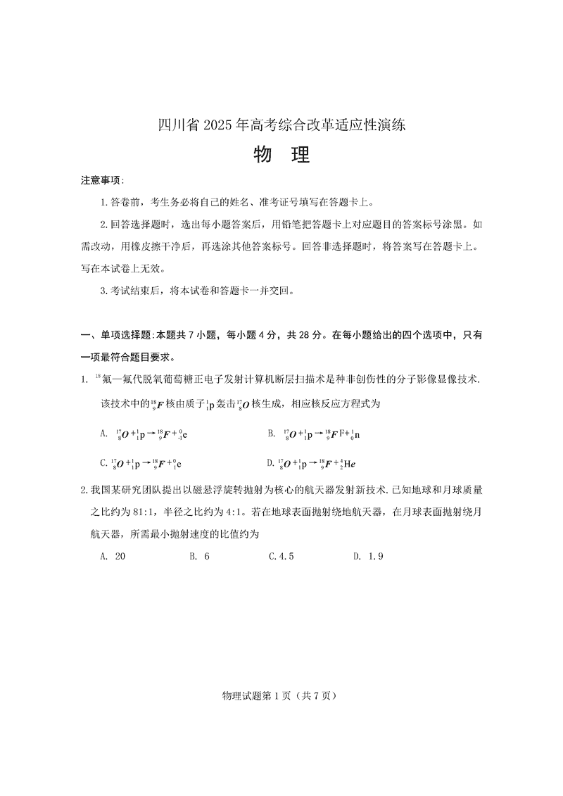 四川八省联考2025年1月高考综合改革适应性演练物理考试已于近日开考,为方便考生考后及时查看考试情况,查漏补缺、弥补不足,本文整理了试题答案解析相关信息!