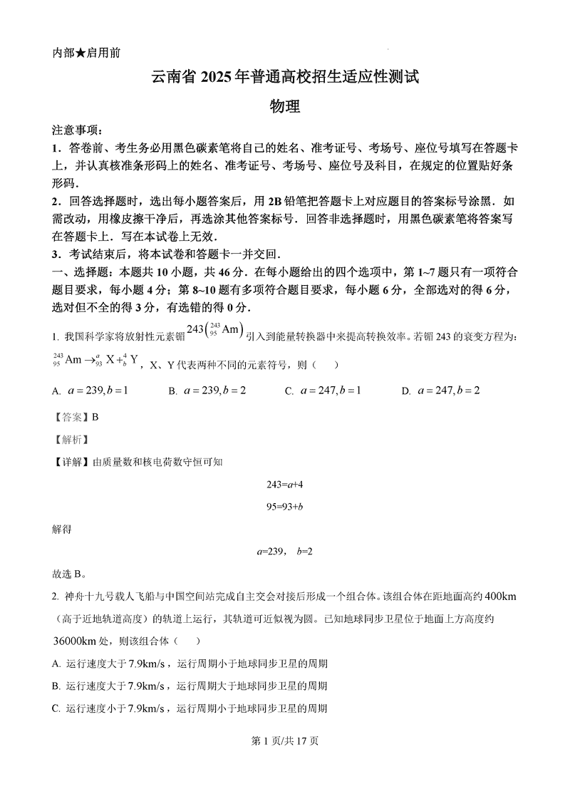 云南八省联考2025年1月高考综合改革适应性演练物理考试已于近日开考,为方便考生考后及时查看考试情况,查漏补缺、弥补不足,本文整理了试题答案解析相关信息!