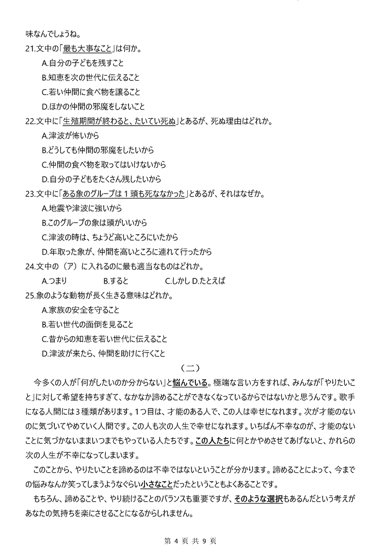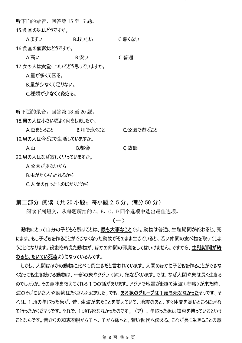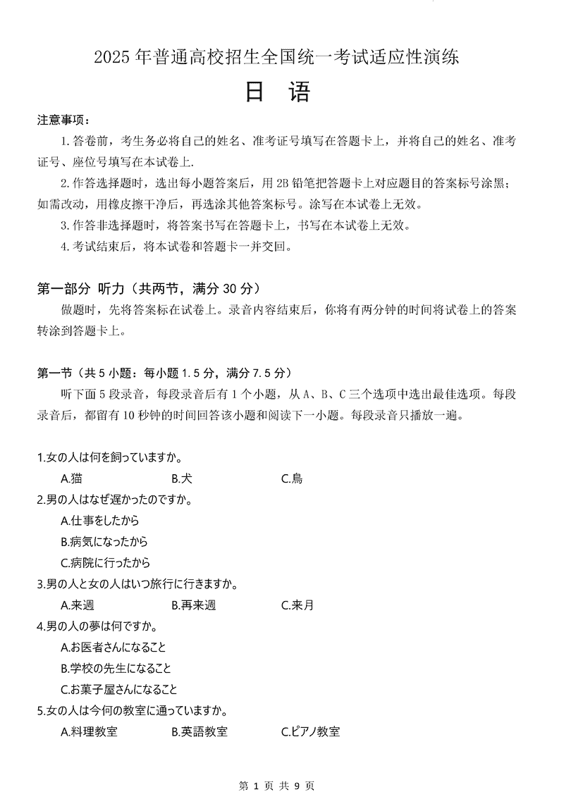 八省联考2025年高考综合改革适应性演练日语试题及答案