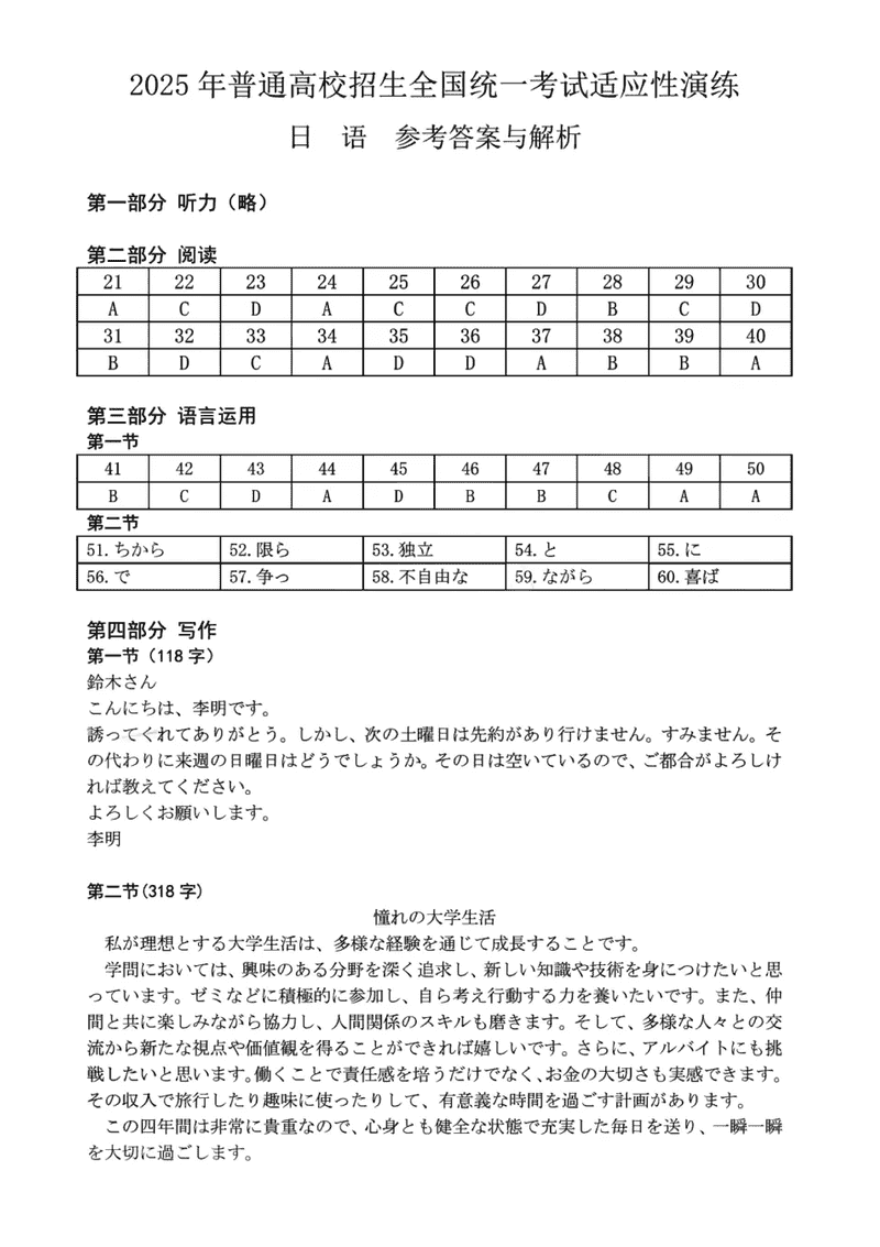 八省联考2025年高考综合改革适应性演练日语考试已于近日开考,为方便考生考后及时查看考试情况,查漏补缺、弥补不足,本文整理了试题答案解析相关信息!