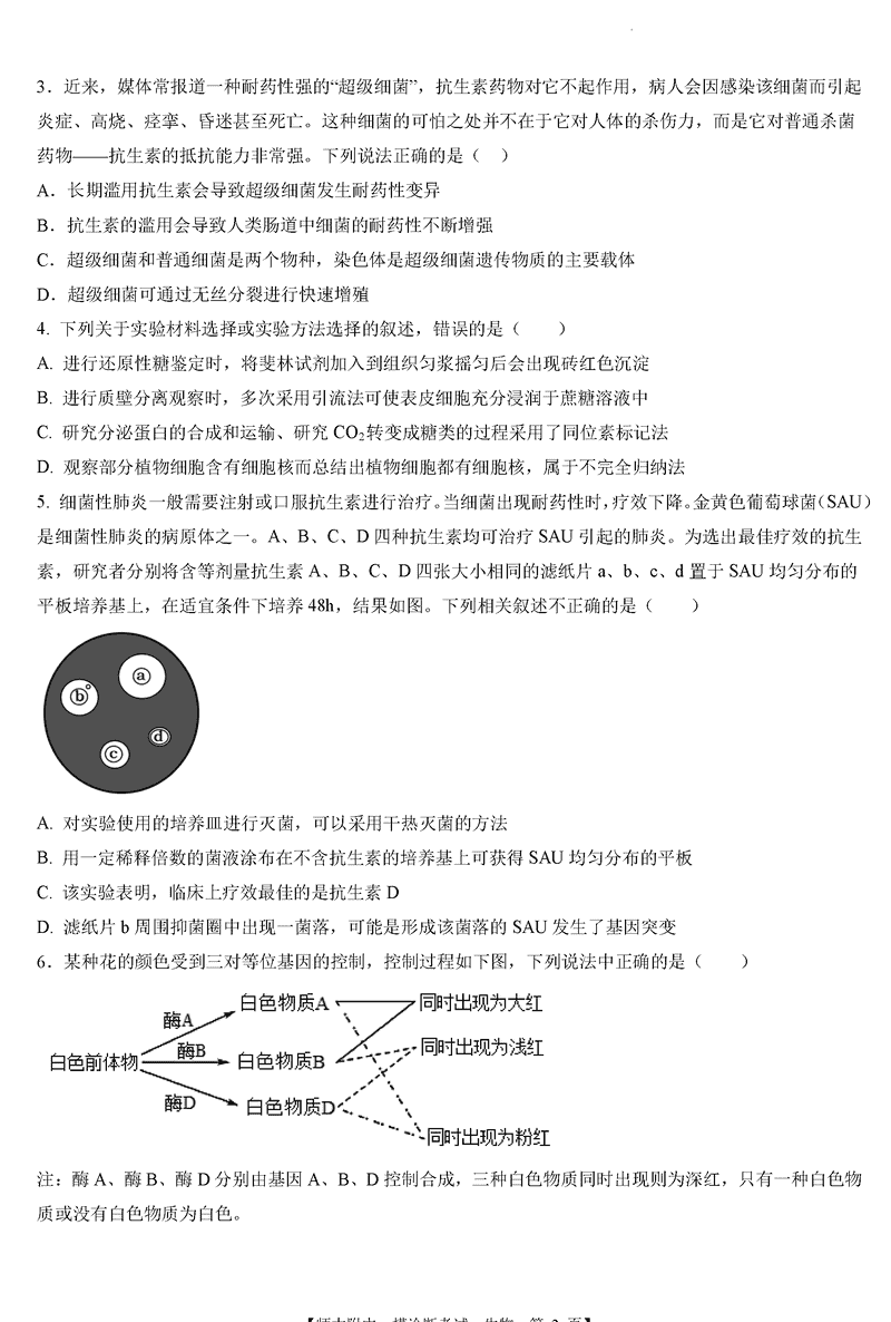 甘肃西北师大附中2025届高三上学期一模生物考试已于近日开考,为方便考生考后及时查看考试情况,查漏补缺、弥补不足,本文整理了试题答案解析相关信息!