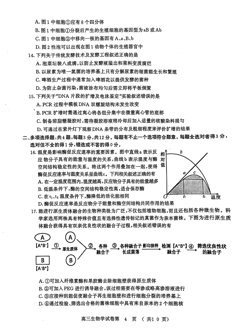 南京市、盐城市2025届高三上学期期末一模生物考试已于近日开考,为方便考生考后及时查看考试情况,查漏补缺、弥补不足,本文整理了试题答案解析相关信息!
