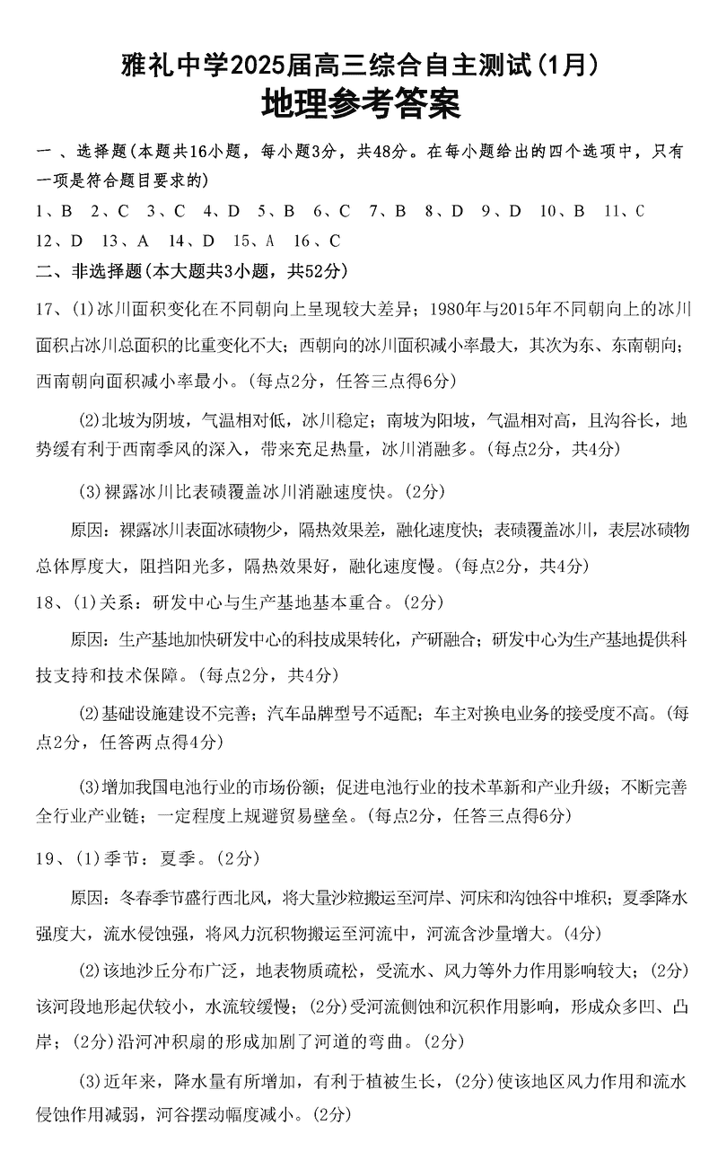 湖南雅礼中学2025届高三上学期1月期末综合自主测试地理考试已于近日开考,为方便考生考后及时查看考试情况,查漏补缺、弥补不足,本文整理了试题答案解析相关信息!