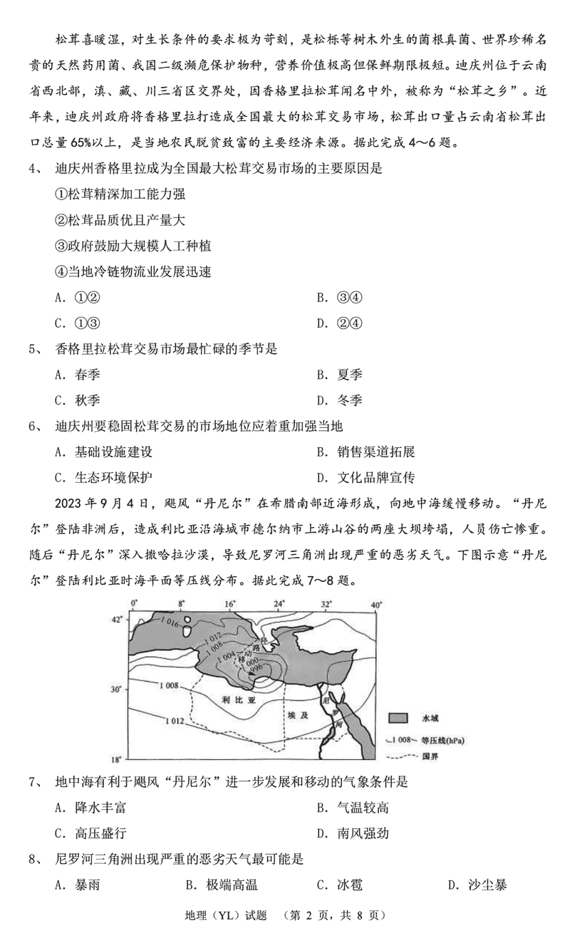 地理试题及答案解析