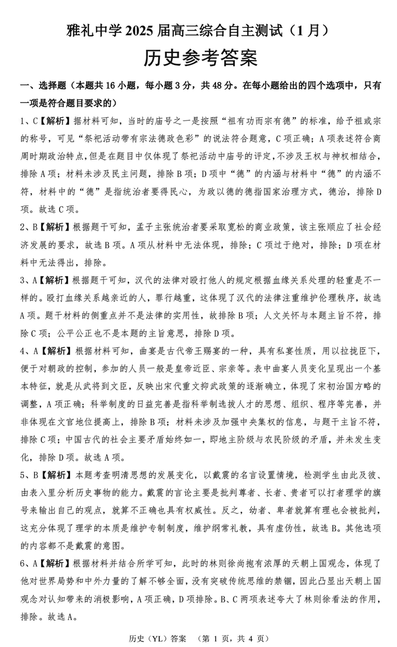 湖南雅礼中学2025届高三上学期1月期末综合自主测试历史考试已于近日开考,为方便考生考后及时查看考试情况,查漏补缺、弥补不足,本文整理了试题答案解析相关信息!