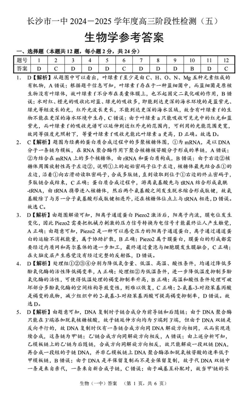 湖南长沙一中2025届高三上学期阶段性检测(五)生物考试已于近日开考,为方便考生考后及时查看考试情况,查漏补缺、弥补不足,本文整理了试题答案解析相关信息!