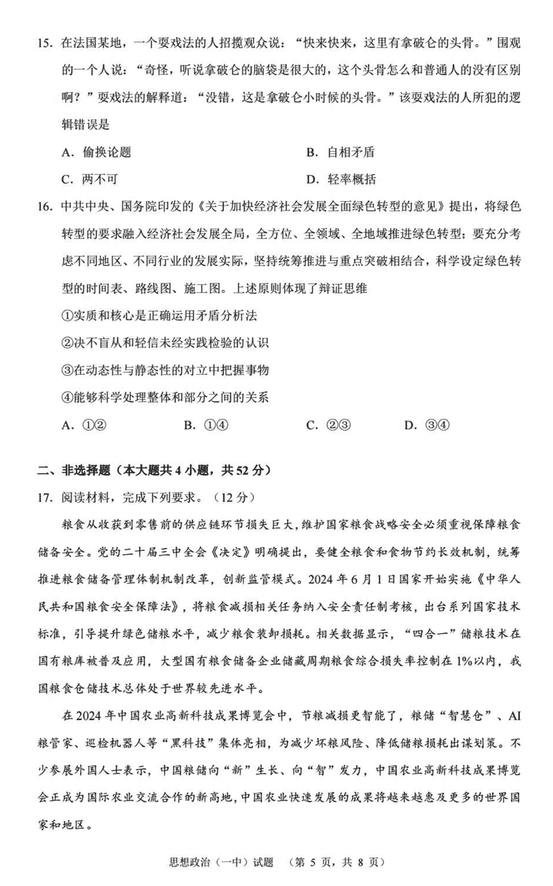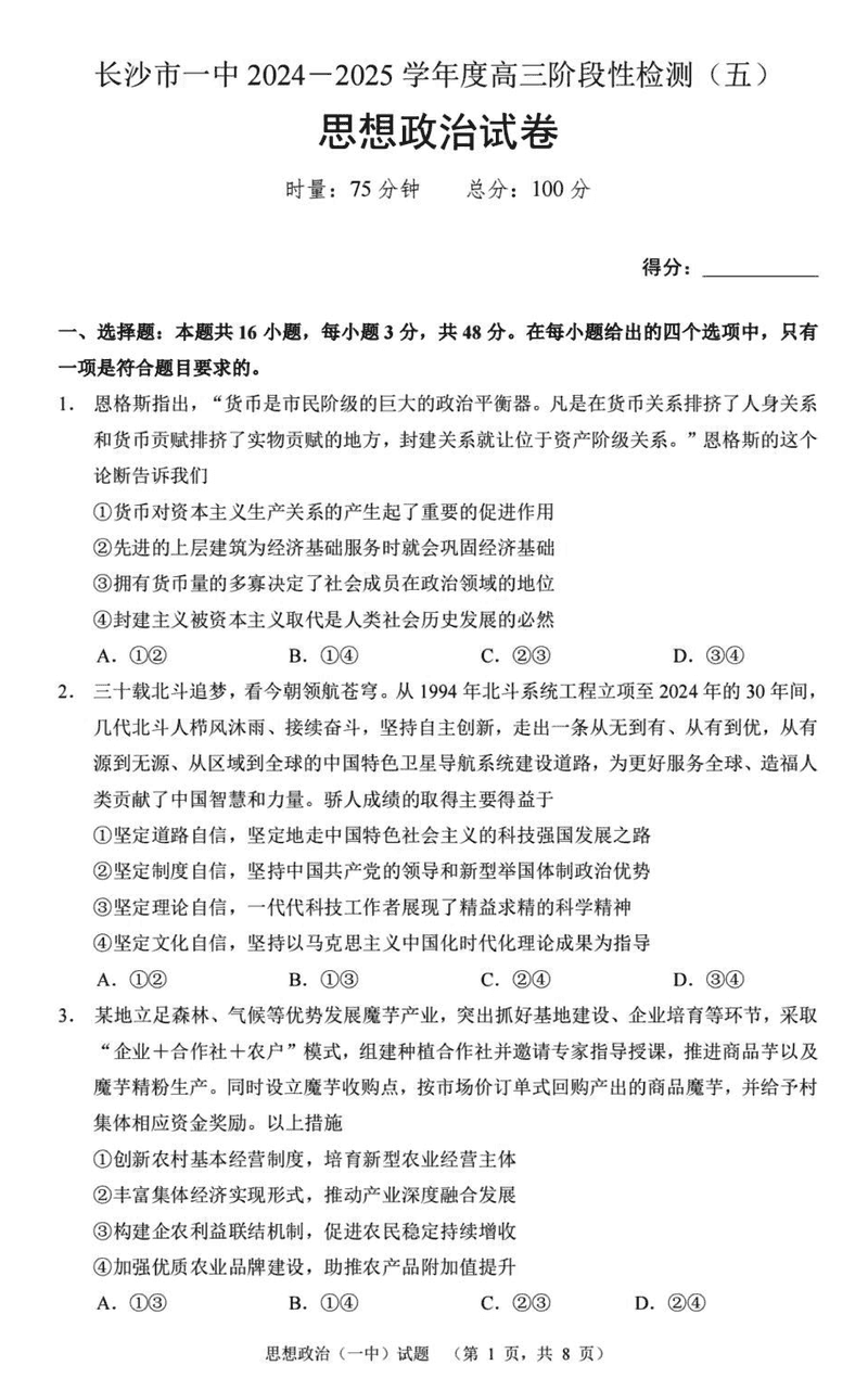 湖南长沙一中2025届高三上学期阶段性检测(五)政治考试已于近日开考,为方便考生考后及时查看考试情况,查漏补缺、弥补不足,本文整理了试题答案解析相关信息!