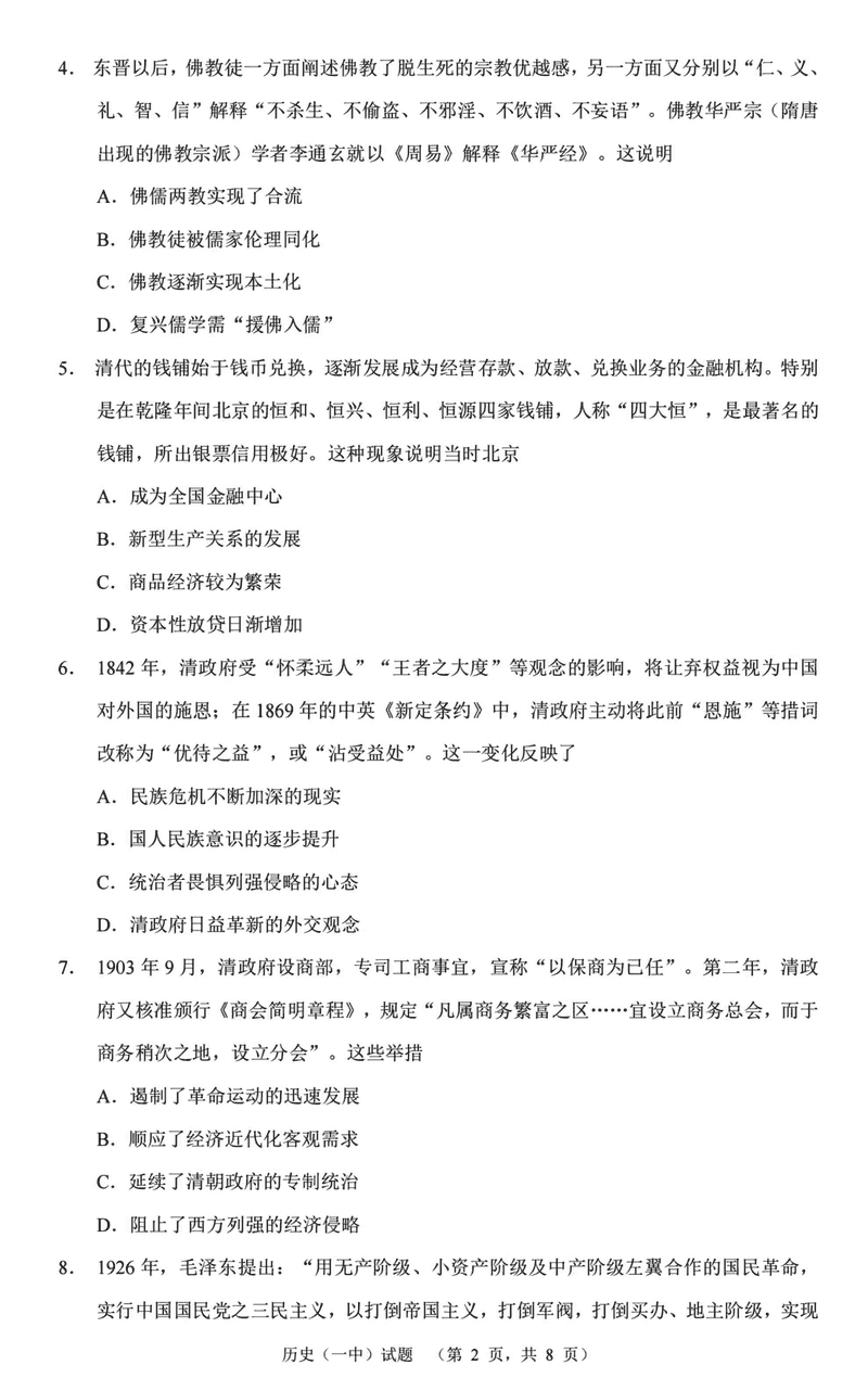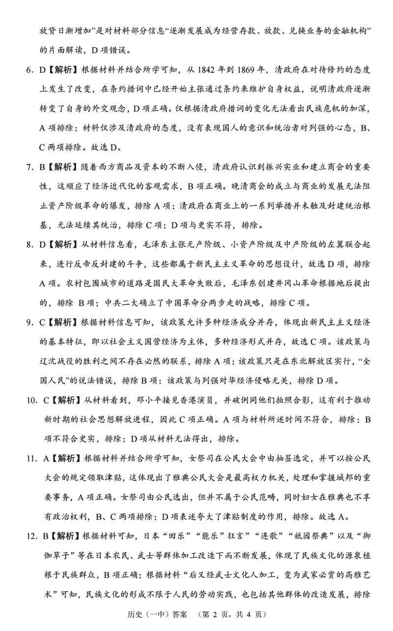 历史试题及答案解析
