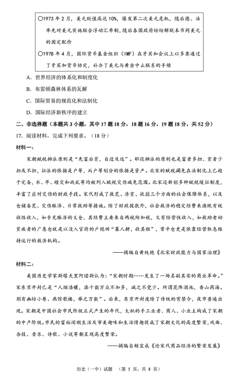 湖南长沙一中2025届高三上学期阶段性检测(五)历史试题及答案
