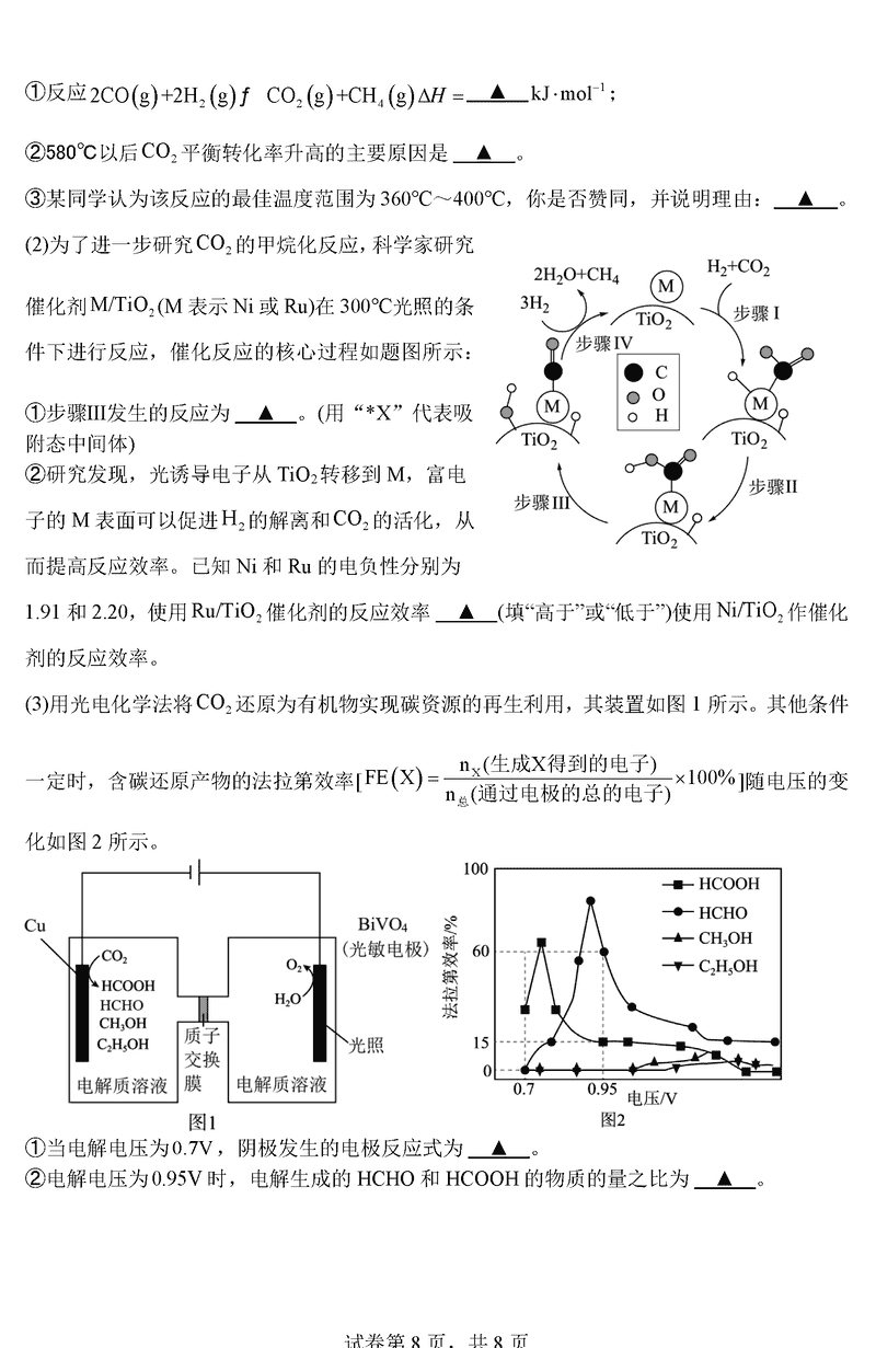 江苏扬州中学2025届高三上学期1月自主评估化学试题及答案