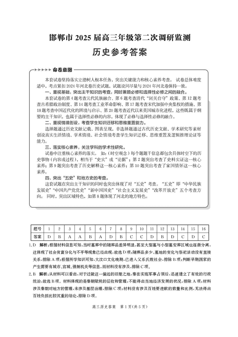 河北邯郸2025届高三上学期第二次调研监测历史考试已于近日开考,为方便考生考后及时查看考试情况,查漏补缺、弥补不足,本文整理了试题答案解析相关信息!