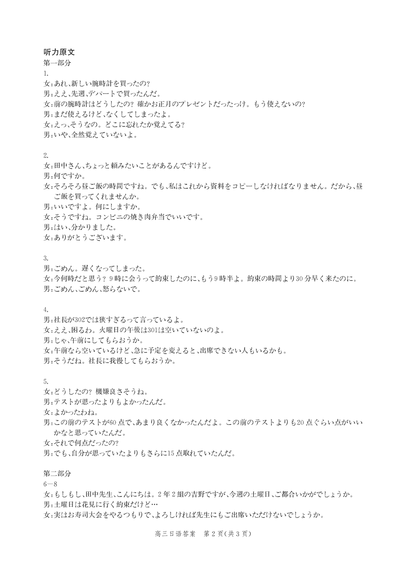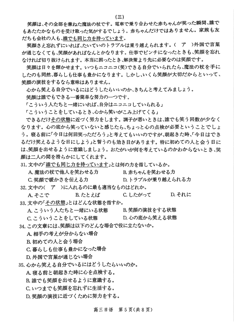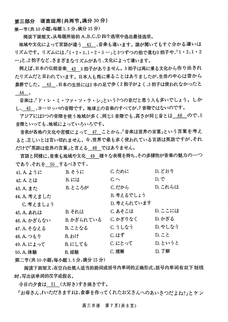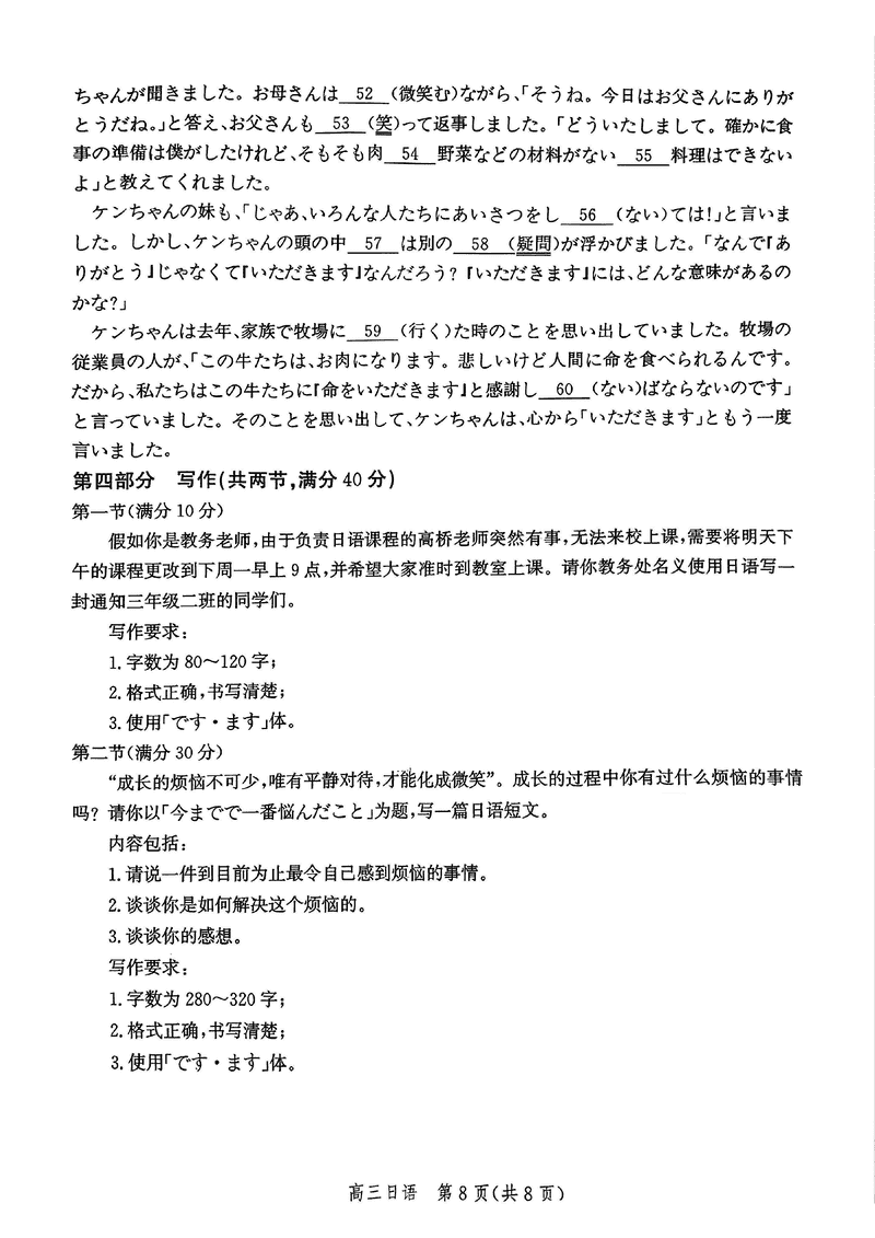 河北邯郸2025届高三上学期第二次调研监测日语试题及答案