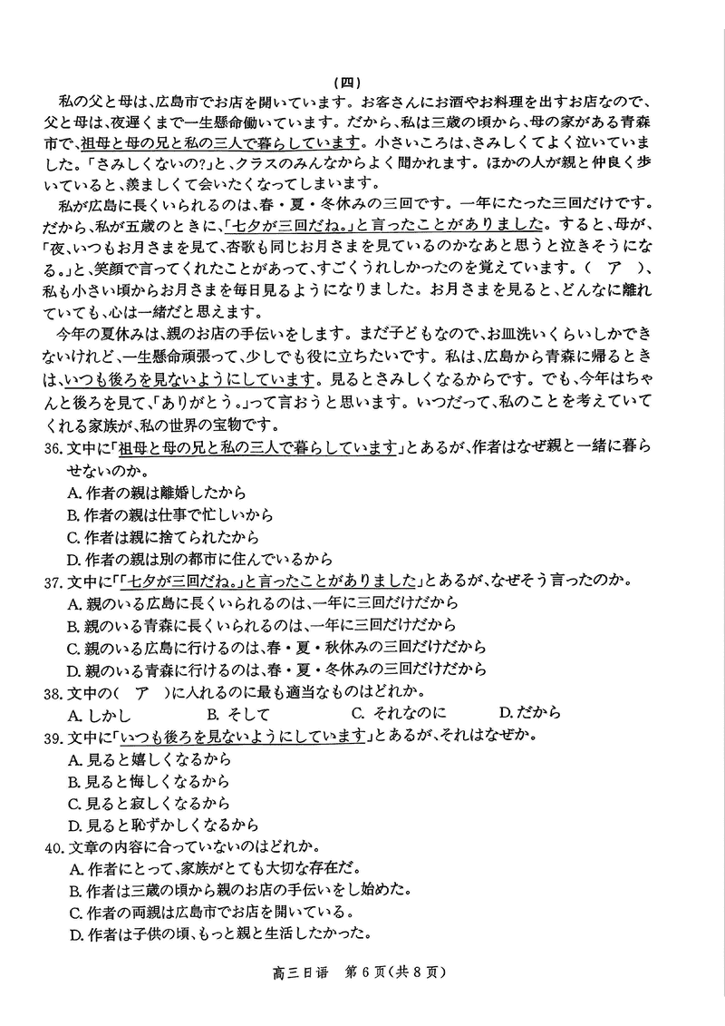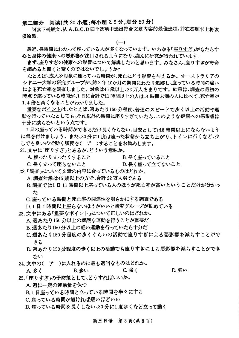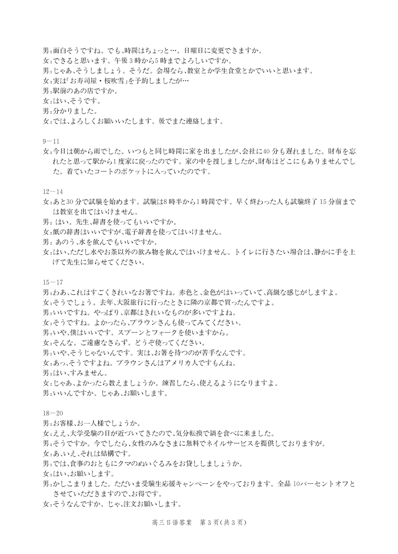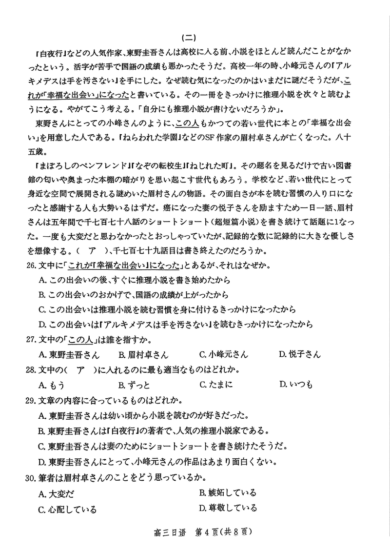 河北邯郸2025届高三上学期第二次调研监测日语试题及答案