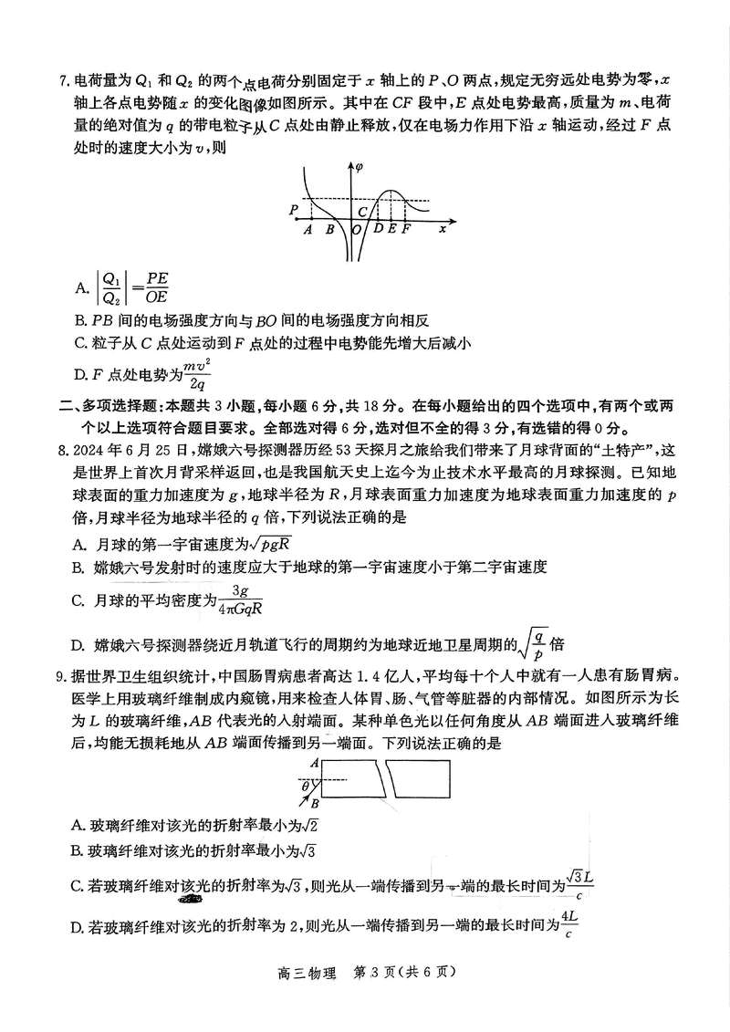 河北邯郸2025届高三上学期第二次调研监测物理试题及答案
