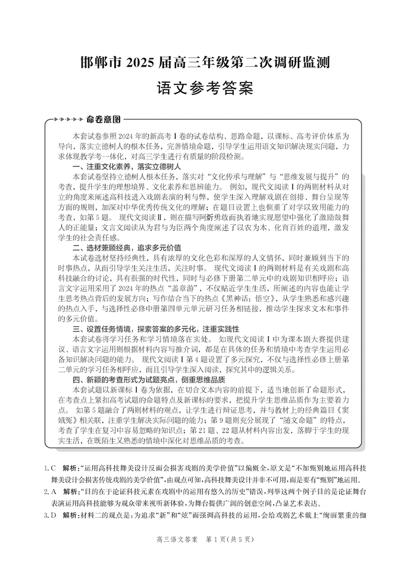 河北邯郸2025届高三上学期第二次调研监测语文考试已于近日开考,为方便考生考后及时查看考试情况,查漏补缺、弥补不足,本文整理了试题答案解析相关信息!