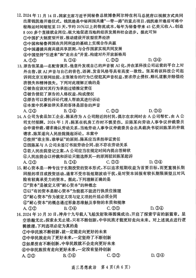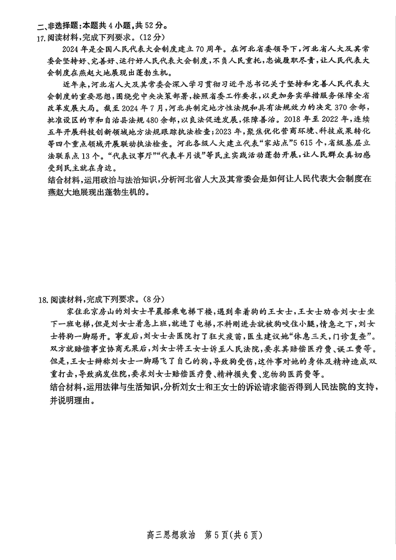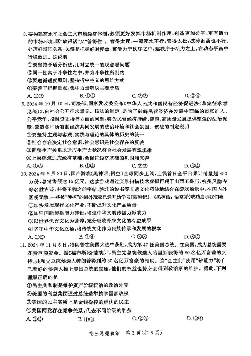 河北邯郸2025届高三上学期第二次调研监测政治试题及答案