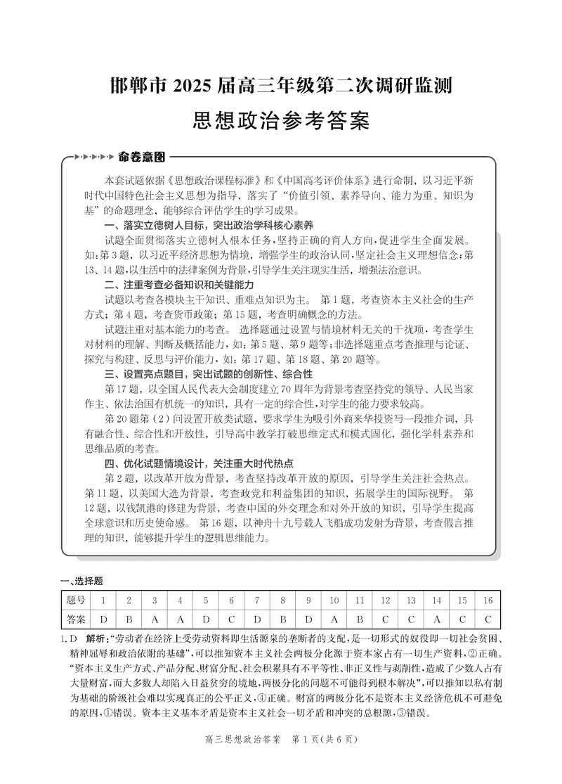 河北邯郸2025届高三上学期第二次调研监测政治考试已于近日开考,为方便考生考后及时查看考试情况,查漏补缺、弥补不足,本文整理了试题答案解析相关信息!
