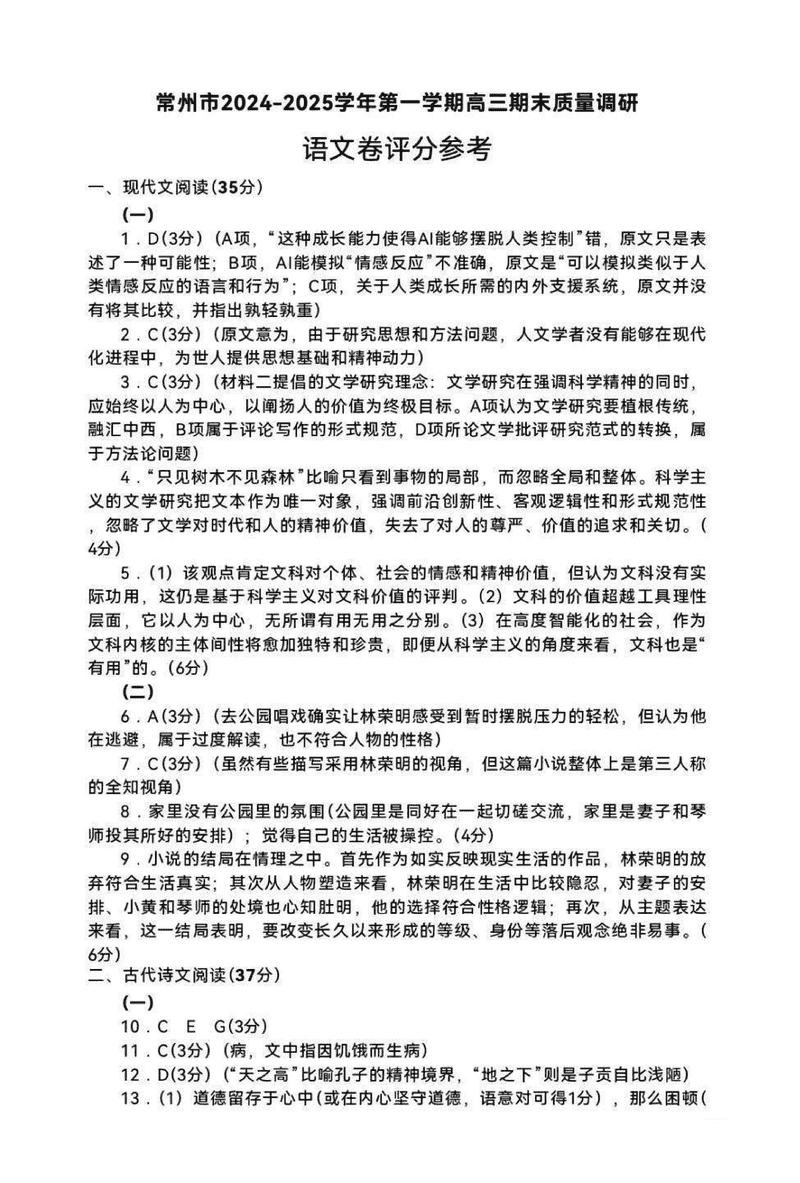 江苏省常州市2024-2025学年高三上学期期末语文考试已于近日开考,为方便考生考后及时查看考试情况,查漏补缺、弥补不足,本文整理了试题答案解析相关信息!
