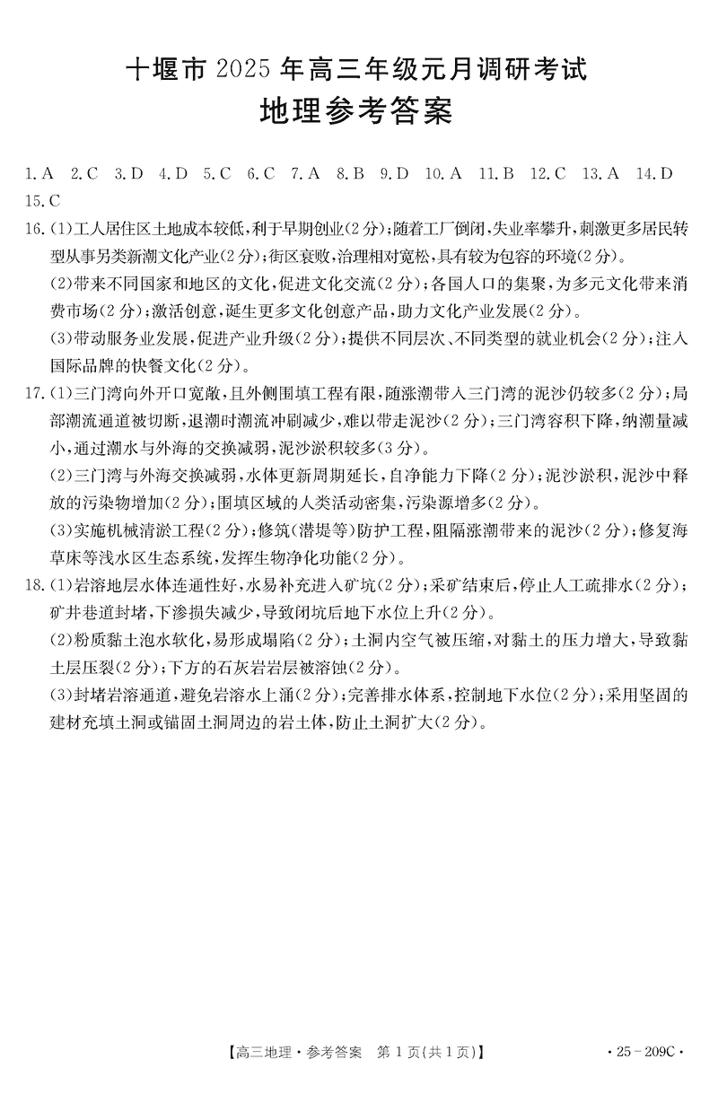 湖北十堰2025届高三元月调研地理试题及答案 时间:2025-01-10 湖北 文综试题 湖北十堰2025届高三元月调研地理考试已于近日开考,为方便考生考后及时查看考试情况,查漏补缺、弥补不足,本文整理了试题答案解析相关信息! 汇总:湖北十堰2025届高三元月调研考试试题及答案汇总 地理试题及答案解析