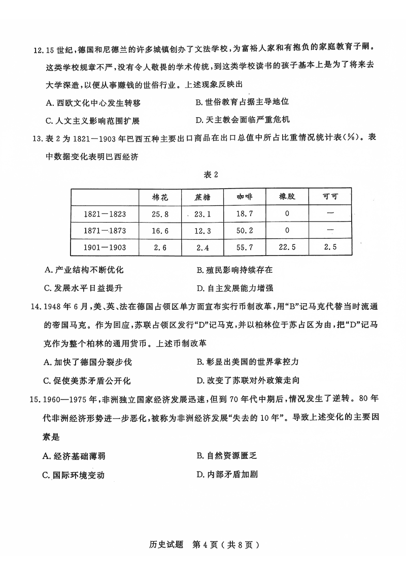 济宁2024-2025学年高三上学期1月期末历史试题及答案
