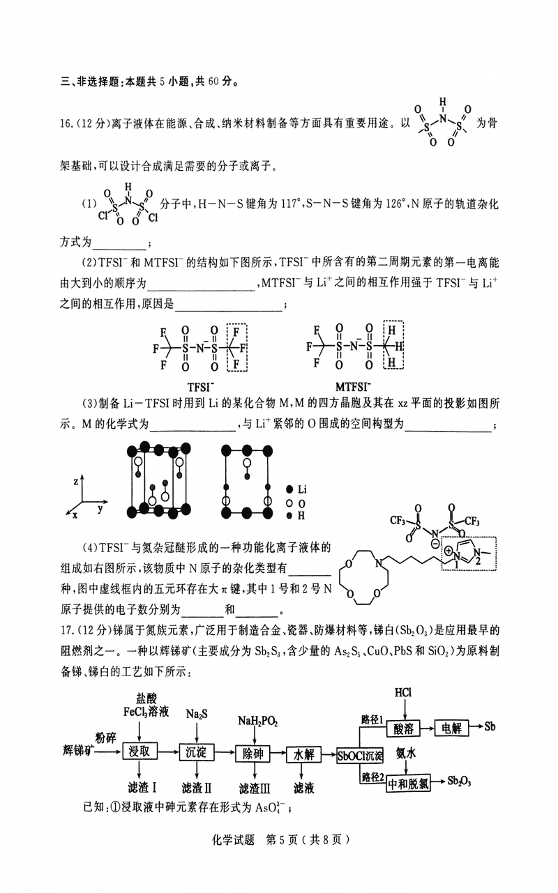 化学试题及答案解析